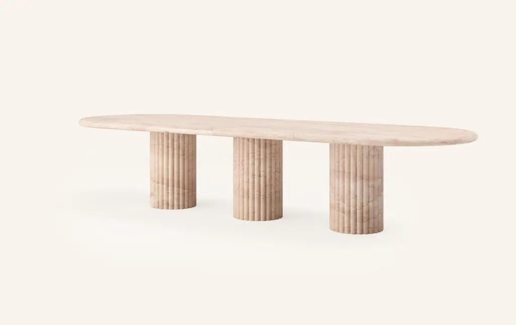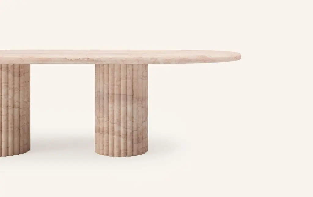 Form(la) Fluta Oval Dining Table 144”l X 48”w X 30”h Rosa Crema Marble