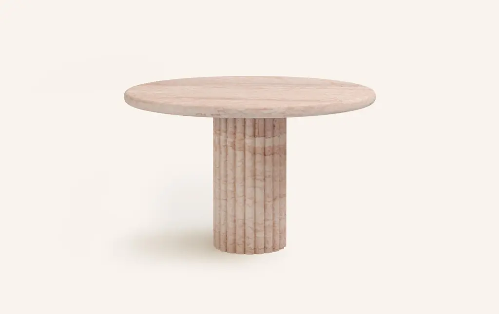 Form(la) Fluta Round Dining Table 42”l X 42”w X 30”h Rosa Crema Marble