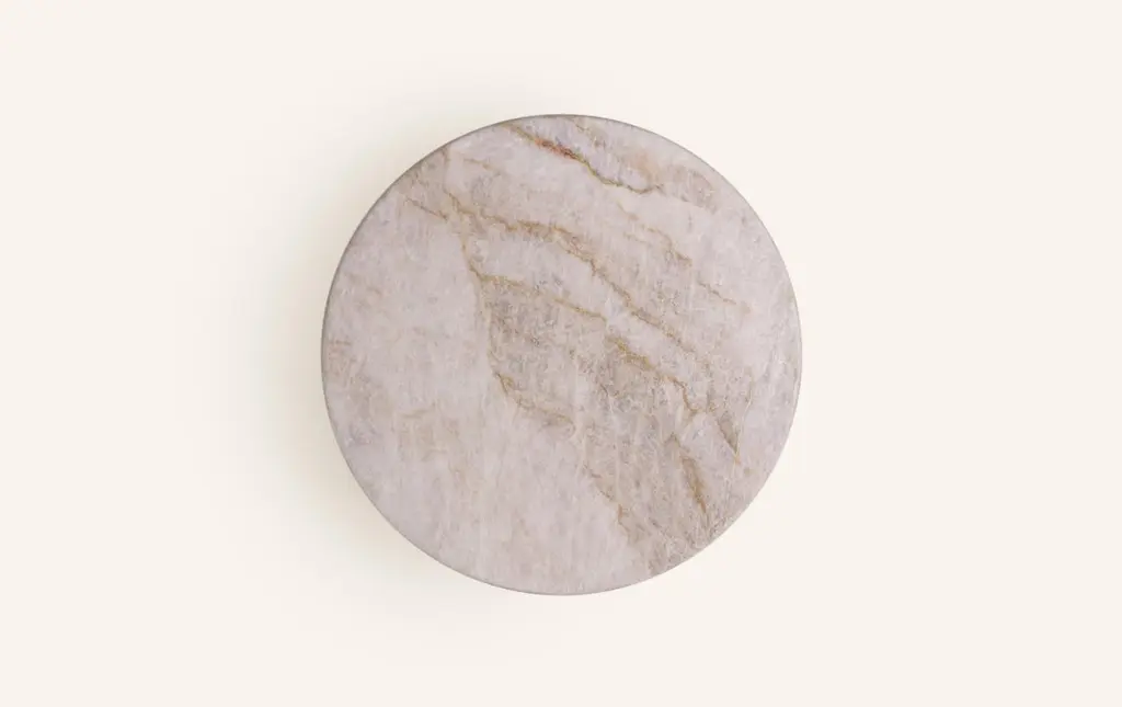 Form(la) Fluta Round Dining Table 48”l X 48”w X 30”h Taj Mahal Quartzite