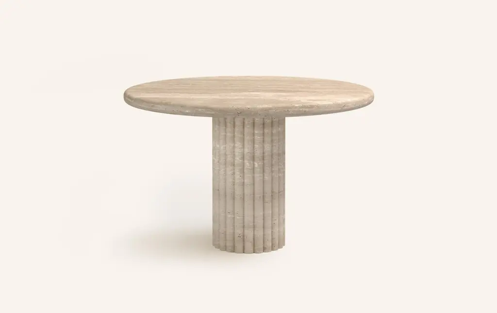 Form(la) Fluta Round Dining Table 48”l X 48”w X 30”h Travertino Crema Vc