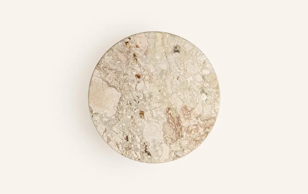 Form(la) Fluta Round Dining Table 54”l X 54”w X 30”h Breccia Rosa Marble