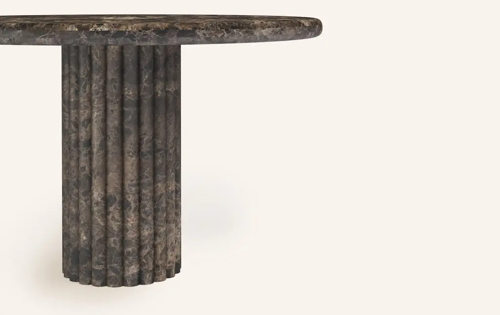 Form(la) Fluta Round Dining Table 54”l X 54”w X 30”h Dark Emperador Marble
