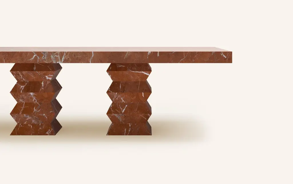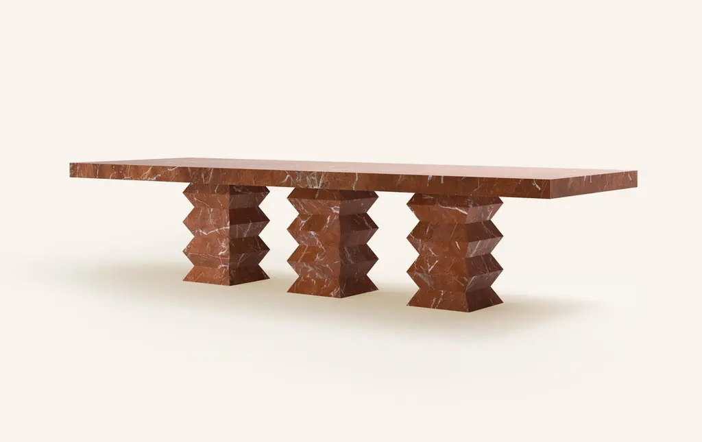 Form(la) Grinza Rectangle Dining Table 144"l X 48"w X 32"h Rojo Alicante Marble
