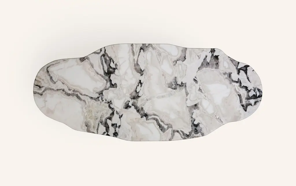 Form(la) Lago Freeform Dining Table 118”l X 48”w X 30”h Oyster Marble & Bronze