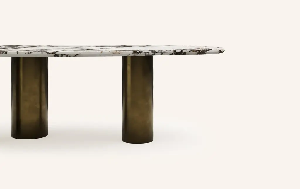 Form(la) Lago Freeform Dining Table 84”l X 42”w X 30”h Viola Marble & Bronze