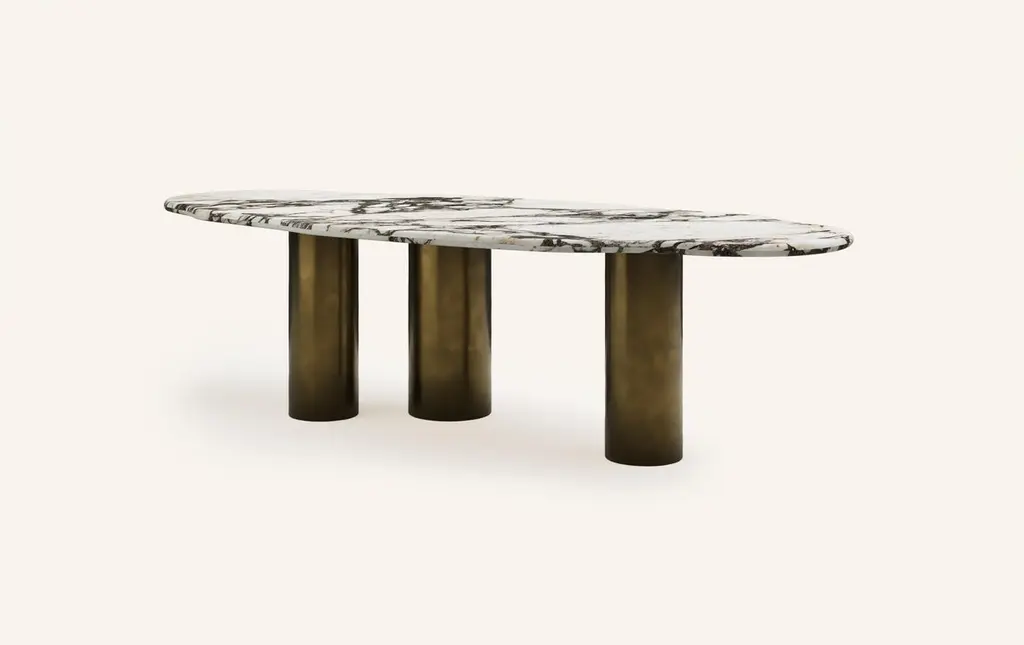 Form(la) Lago Freeform Dining Table 96”l X 42”w X 30”h Viola Marble & Bronze