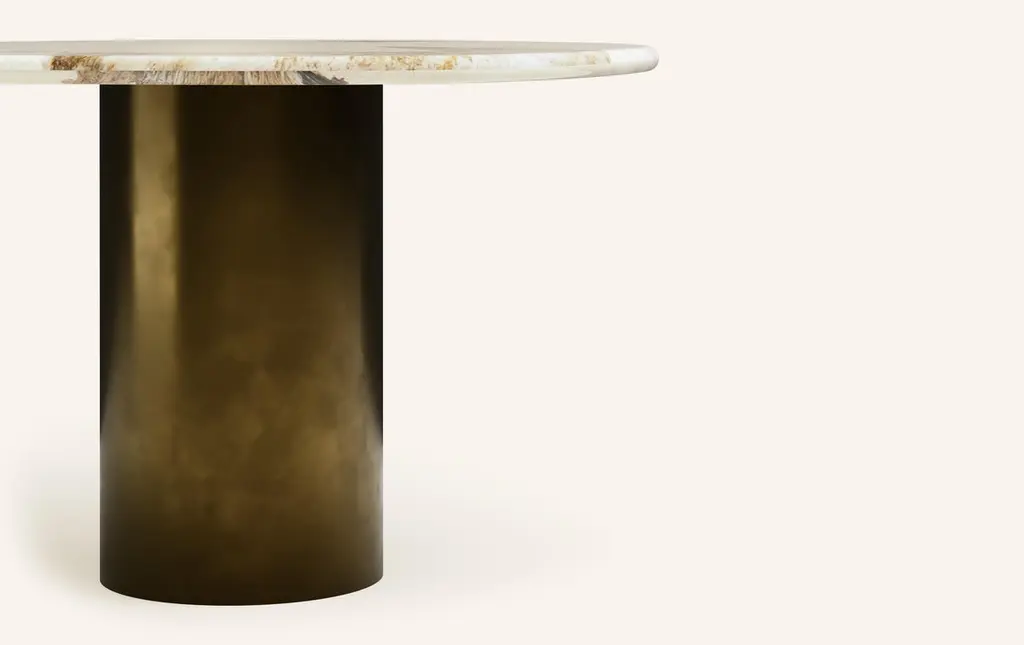 ‘LAGO’, ITALIAN FOR ‘LAKE’, HAS INSPIRED A FORM DERIVED FROM NATURE, TEXTURED WITH LUXURIOUS STONES AND METALS. THE COLLECTION ENCOURAGES NESTING AND LAYERING IN ITS AVAILABLE FORMS.DIMENSIONS: 42”L x 42”W x 30”H: - 15"Ø ROUND BASE- 16"Ø CUTOUT ON UNDERSIDE OF TABLE TOPCONSTRUCTION:TABLE TOP: - 3/4”x 2 SLABS WITH FULL BULLNOSE EDGE- HOLE(S) IN TABLE TOP INTERLOCKS WITH BASE OF TABLEBASE:- SOLID STONE CONSTRUCTION OR 304 STAINLESS STEEL WITH ANTIQUE BRONZE FINISH- FELT LINING TO BOTTOM OF BASE FOR FLOOR PROTECTIONWEIGHT:42”L x 42”W x 30”H WITH ANTIQUE BRONZE LEGS: - GROSS WEIGHT INCLUDING WOOD CRATE 572LBS