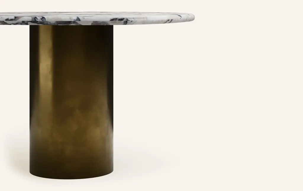 Form(la) Lago Round Dining Table 60”l X 60”w X 30”h Oyster Marble & Bronze