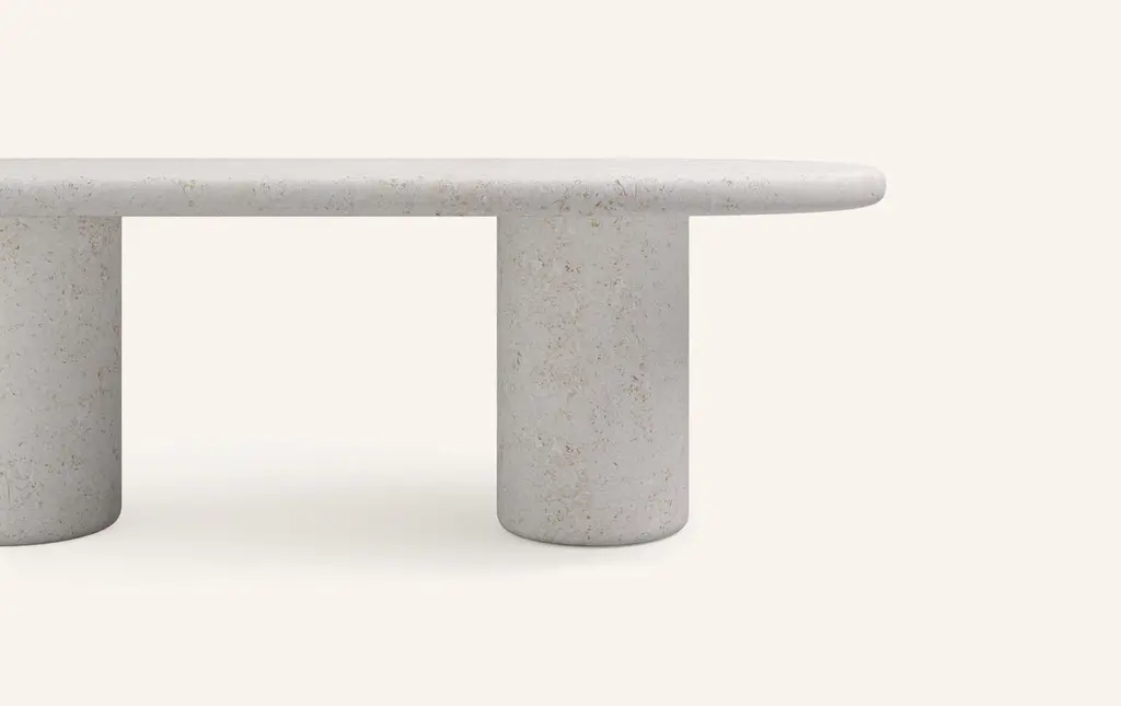 ‘LUNA’ IS A REIMAGINED ITERATION OF OUR ORIGINAL ‘MOON’ COLLECTION. WITH MORE PRONOUNCED PROPORTIONS LUNA INVITES A GENTLE CURVE TO THE BASE DESIGN AND POWERFUL BULLNOSE EDGE DETAILING.DIMENSIONS:96”L x 42”W x 30”H: - 3" THICK SOLID TABLE TOP- 15"Ø SOLID BASE(S) WITH 1.5” RADIUS TO BOTTOM- 16"Ø CUTOUT(S) IN TABLE TOP WITH 9”Ø INTERLOCKCONSTRUCTION:TABLE TOP: - SOLID 3” THICK TABLE TOP WITH FULL BULLNOSE EDGE- HOLE IN TABLE TOP INTERLOCKS WITH BASE OF TABLEBASE:- CARVED FROM A SINGLE SOLID BLOCK OF STONE- FELT LINING TO BOTTOM OF BASE FOR FLOOR PROTECTIONWEIGHT:96”L x 42”W x 30”H: - GROSS WEIGHT INCLUDING WOOD CRATE 2110LBS