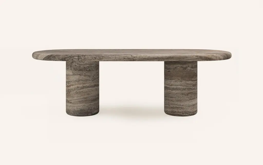 ‘LUNA’ IS A REIMAGINED ITERATION OF OUR ORIGINAL ‘MOON’ COLLECTION. WITH MORE PRONOUNCED PROPORTIONS LUNA INVITES A GENTLE CURVE TO THE BASE DESIGN AND POWERFUL BULLNOSE EDGE DETAILING.DIMENSIONS:96”L x 42”W x 30”H: - 3" THICK SOLID TABLE TOP- 15"Ø SOLID BASE(S) WITH 1.5” RADIUS TO BOTTOM- 16"Ø CUTOUT(S) IN TABLE TOP WITH 9”Ø INTERLOCKCONSTRUCTION:TABLE TOP: - SOLID 3” THICK TABLE TOP WITH FULL BULLNOSE EDGE- HOLE IN TABLE TOP INTERLOCKS WITH BASE OF TABLEBASE:- CARVED FROM A SINGLE SOLID BLOCK OF STONE- FELT LINING TO BOTTOM OF BASE FOR FLOOR PROTECTIONWEIGHT:96”L x 42”W x 30”H: - GROSS WEIGHT INCLUDING WOOD CRATE 2110LBS