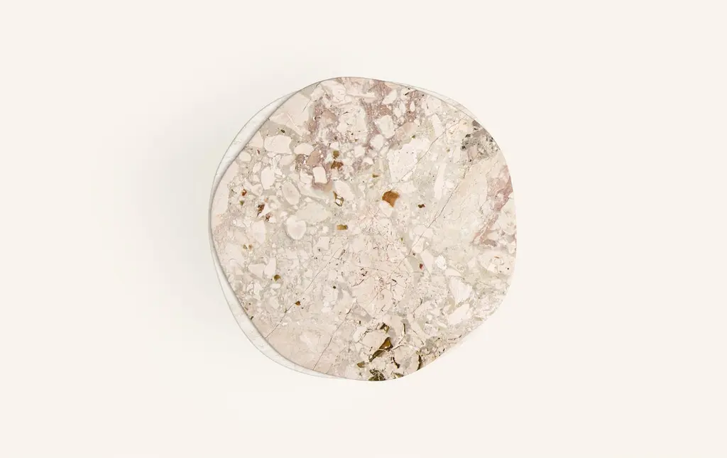 Form(la) Onda Round Dining Table 54”l X 54”w X 29”h Breccia & Travertino Navona