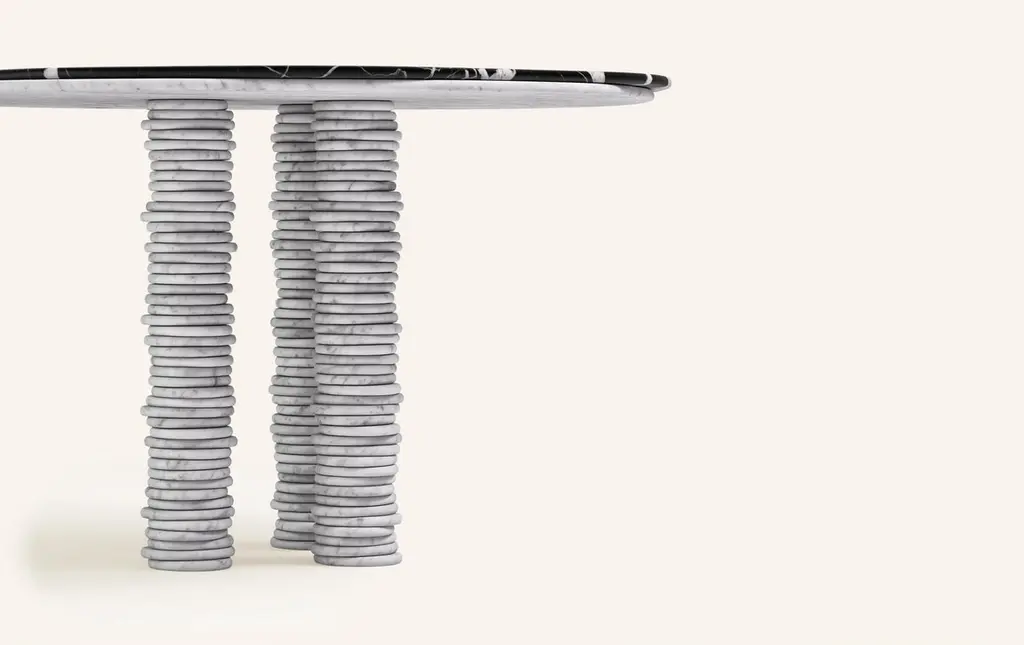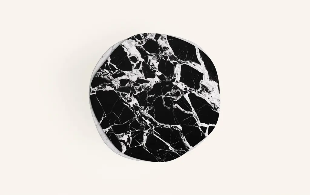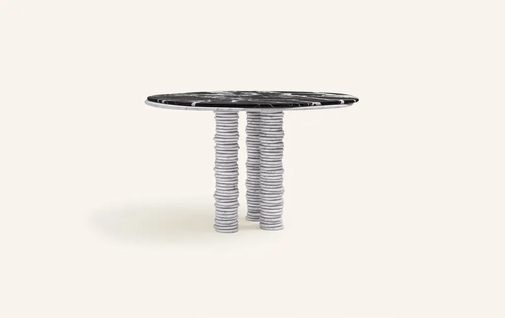 Form(la) Onda Round Dining Table 54”l X 54”w X 29”h Nero & Carrara Bianco Marble