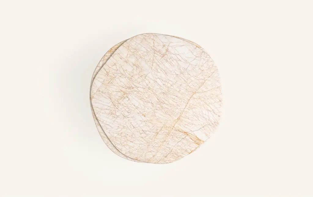Form(la) Onda Round Dining Table 60”l X 60”w X 29”h Golden Spider Marble