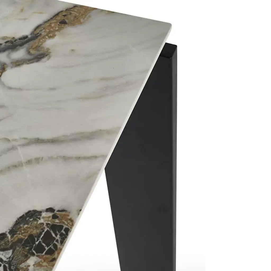 The Four Ceramic Table from Kartell merges Ferruccio Laviani's geometric precision with luxurious materials. The stoneware and marble top rest on painted steel legs, creating a sensible structure that works in both dining rooms and offices. The slim profile allows for practical storage solutions underneath, while the durable materials ensure long-term use. This multifunctional table adapts to various needs - from formal dining to productive workspaces. Multiple tables can be arranged together to create larger configurations for shared settings.