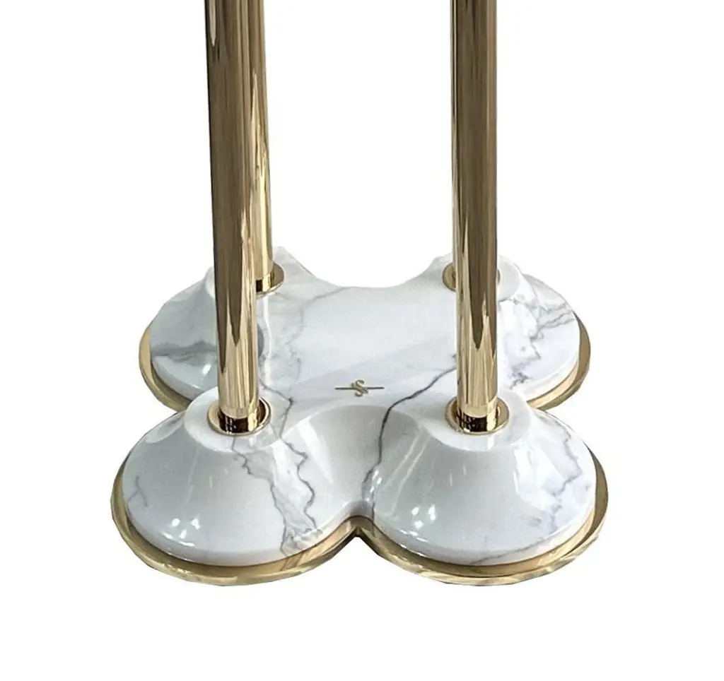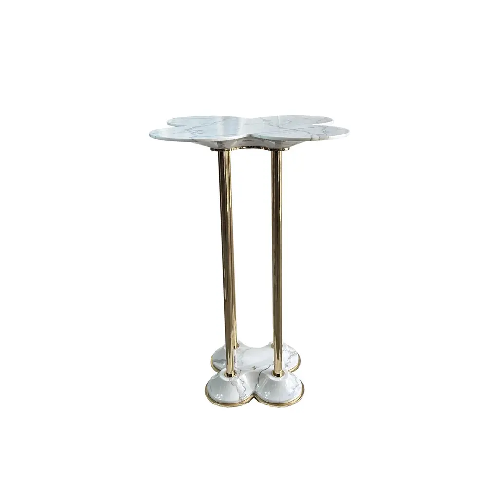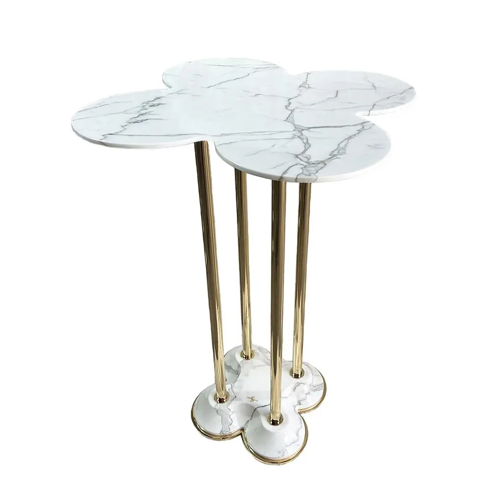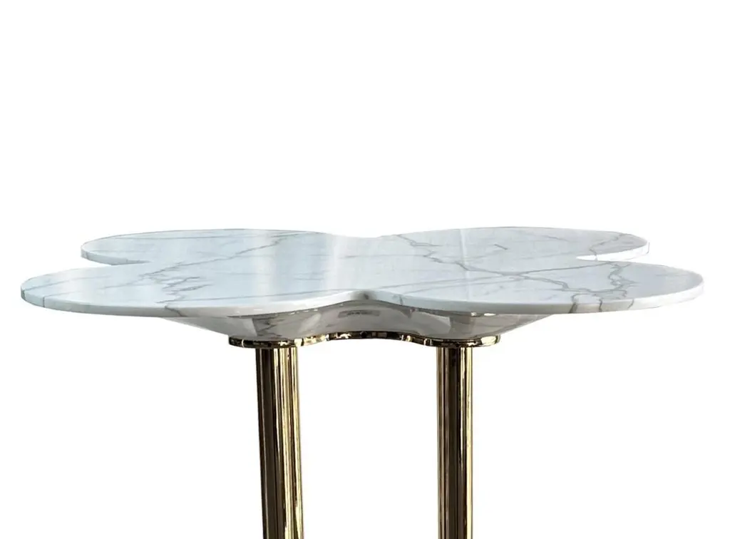 Four-Leaves Marble Dining Table by Euromarmi StoreDimensions: D 64 x W 64 x H 104 cmMaterials: Statuario marble, 24K Gold-Plated.Founded by Angela Stiuso, Euromarmi Store was born from the experience and dedication that the stone processing has passed down from generation to generation.Each creation carries with it the legacy of centuries of Italian craftsmanship and meticulous manufacturing enhanced in every single process, in perfect balance between tradition and innovation. Our fine materials, manual skills, and passion are the assets that guide Euromarmi Store in the production of inimitable objects, creating a rare and magical identity with timeless elegance.Our wide range of products offers a wide choice that ranges from furnishing accessories to objects, from mineralogy to natural stone jewelry. In addition, we offer a highly specialized design service for the planning and construction of interiors and exteriors, using highly technological machinery capable of satisfying every personalized request.Production strictly follows sustainability principles, adopting practices aimed at reusing and enhancing resources. We are committed to maximizing the value of each material treated, ensuring that nothing loses its intrinsic value. This ethical approach translates into a responsible production cycle, aligned with the highest standards of environmental sustainability.