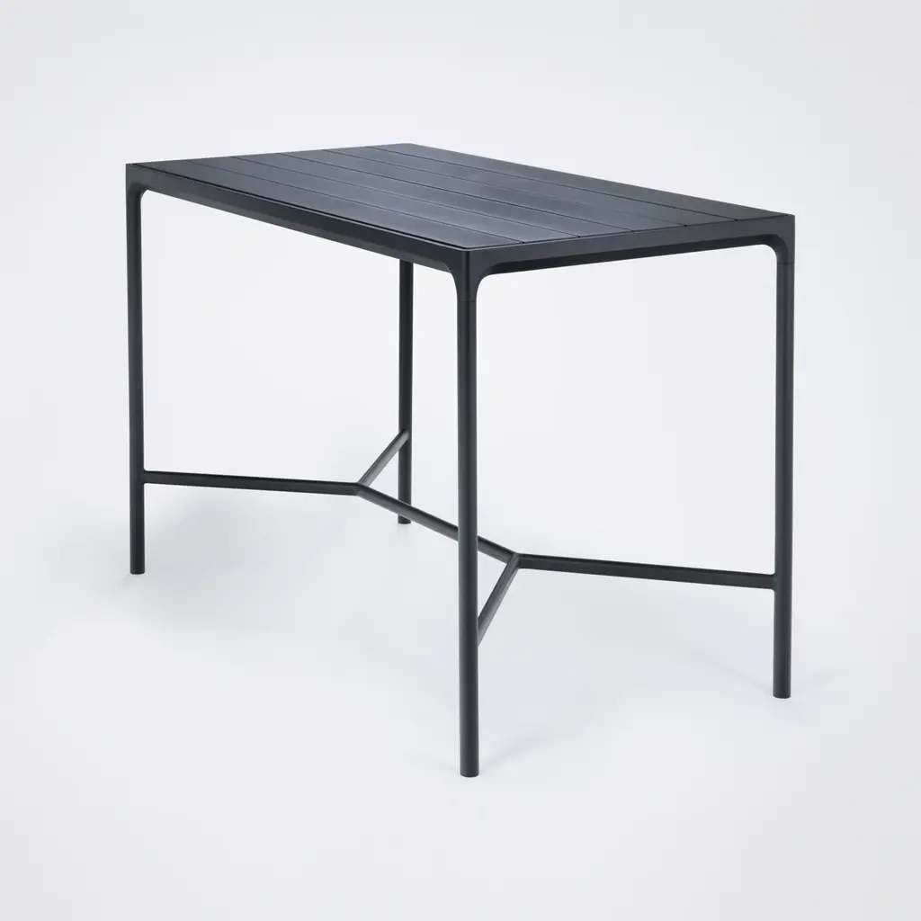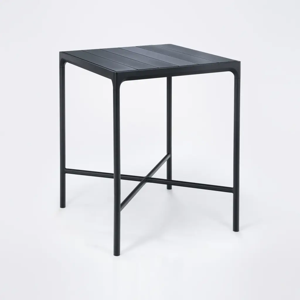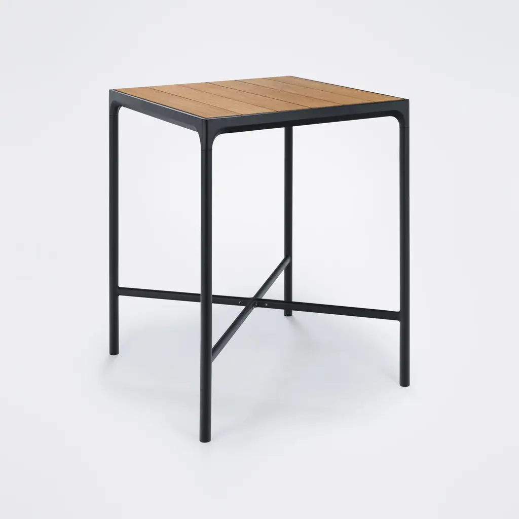 Remarkably strong and durable, the Four Outdoor Bar Table from HOUE provides a sturdy surface for entertaining or enjoying drinks al fresco. A simple black aluminum frame is accented by sleek metal or the warmth of sustainable bamboo for a modern take on the traditional slatted design. Perfect for bar-height seating, this table creates an elevated dining space for poolside patios, rooftop decks, and more. Highlights
