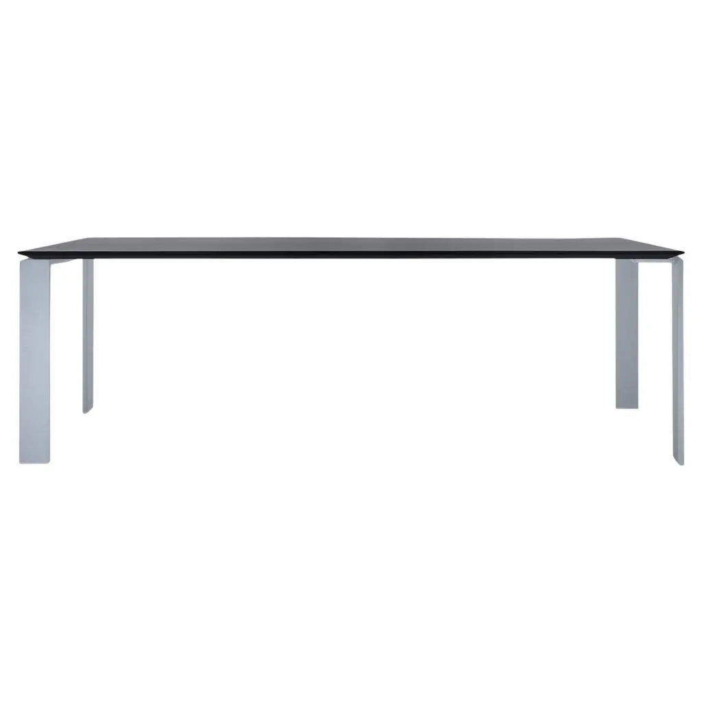 This functional and refined table also has a strict geometric design. Thanks to the elegant design solution, the position of the slim table top allows for the convenient positioning of drawers or storage furnishings for computer hardware. They can be placed side-by-side to form office workstations. Features