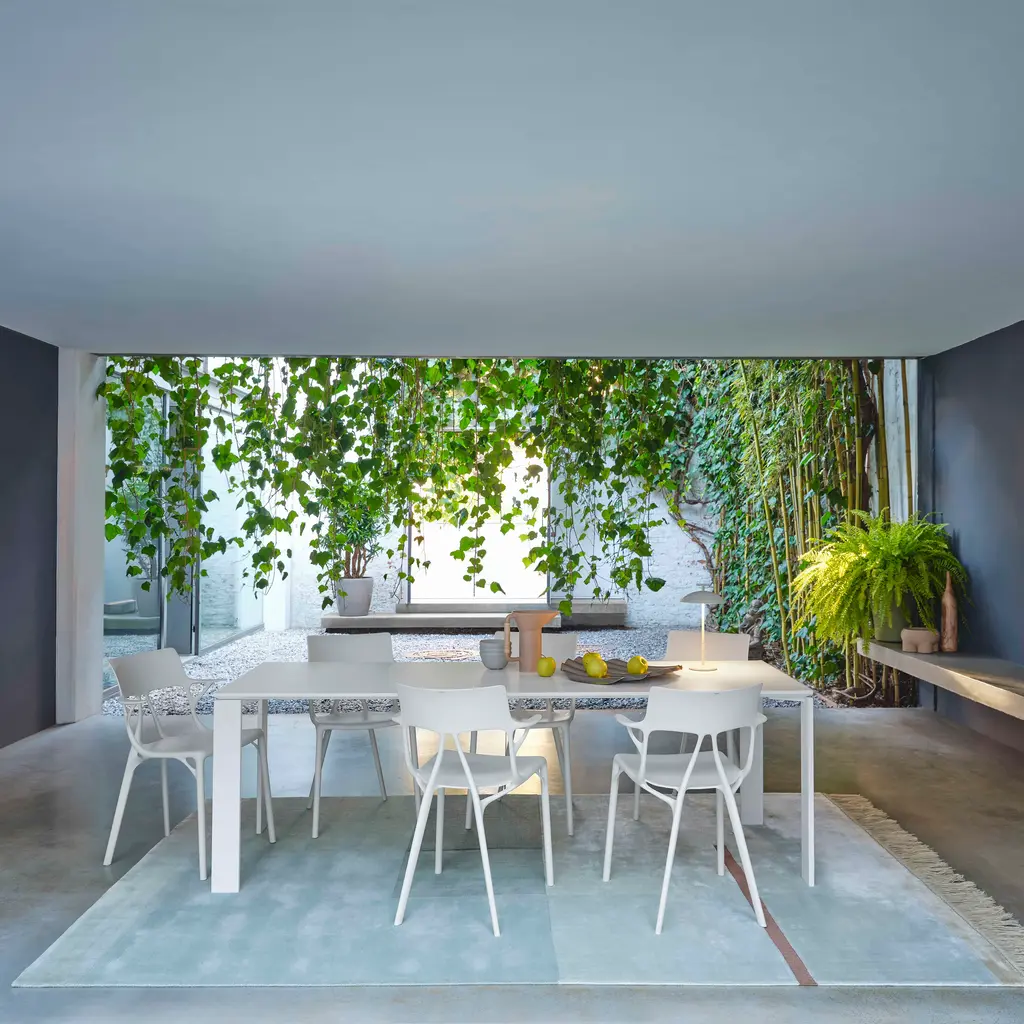 This functional and refined table also has a strict geometric design. Thanks to the elegant design solution, the position of the slim table top allows for the convenient positioning of drawers or storage furnishings for computer hardware. They can be placed side-by-side to form office workstations. Features