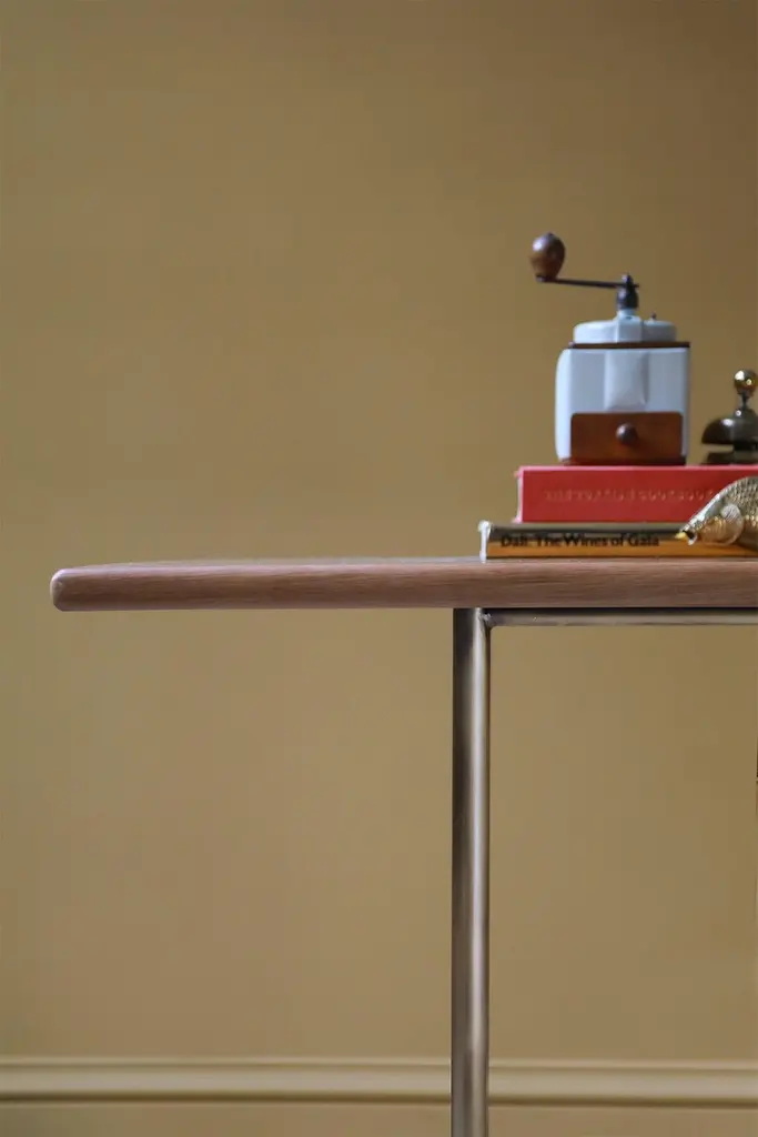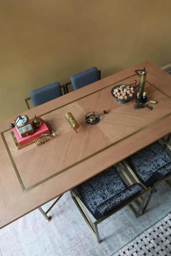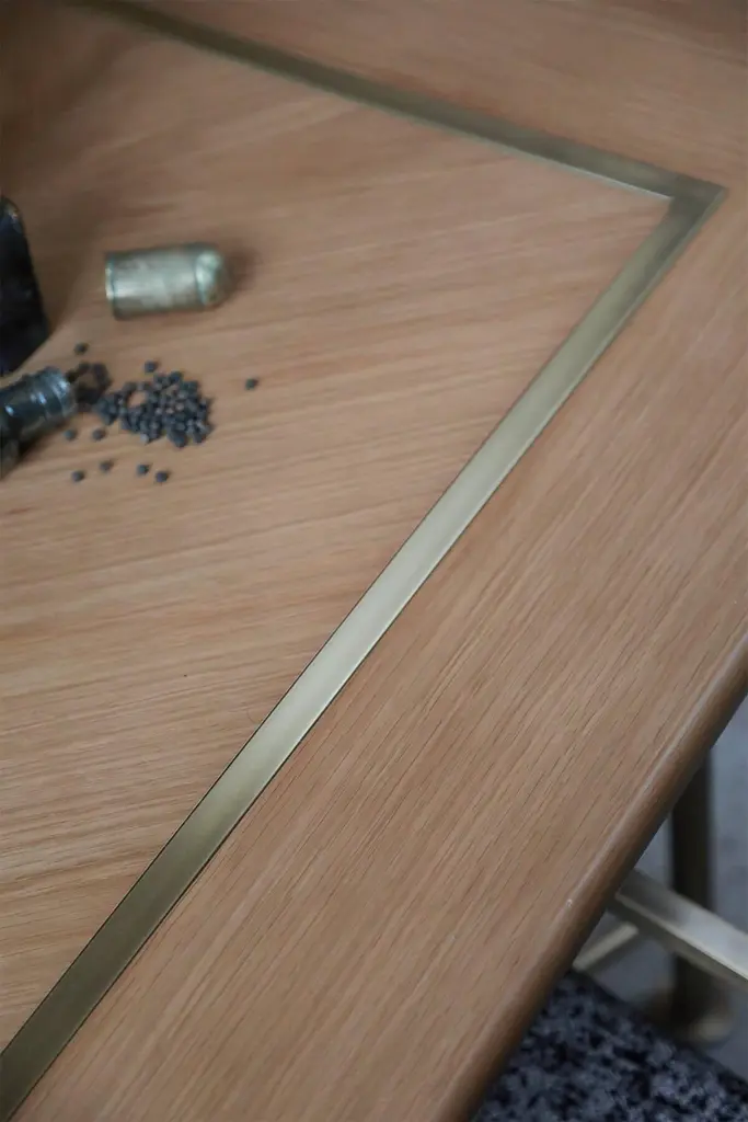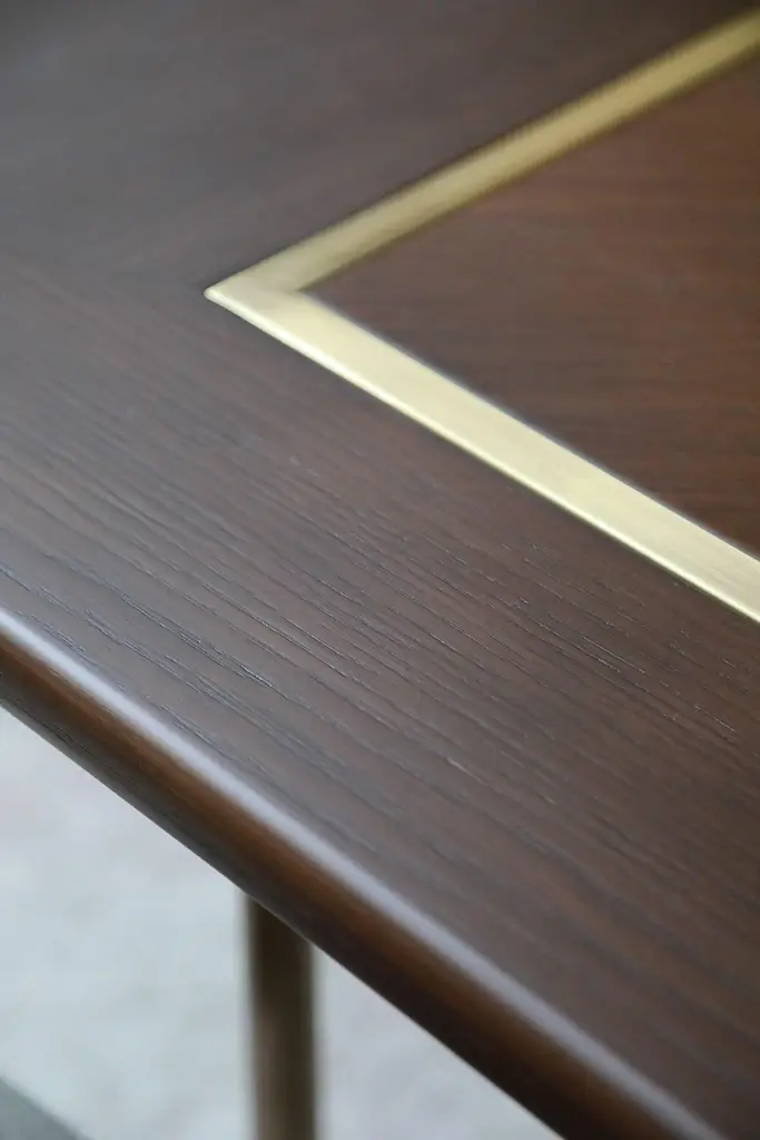 With its large dimensions and light American oak table, frame table brings naturalness to your dining room with all its durability so that you can enjoy your meals more comfortably.Measures: length: 86.6'' / depth: 39.4'' / height: 30.3''Weight: 59.5 kg-First grade veneer American oak-Brass-Eight-person-Registered designAlternativesLight walnut / natural flaxseed oil / black lacquer paintBrass / matt chrome / black painted metalContact us for more different color and material options.SOLID WOOD AND VENEER USE AND CAREClean surfaces with a slightly damp cloth.Check with your sales consultant about your product’s humidity and ultraviolet light information.Materials have a natural identity; time, ultraviolet light, original character all contribute to the individuality of the piece.Do not use chemical products directly on your Lagu product. Some ingredients may cause damage to surfaces.Avoid contact with hot and sharp objects to product surfaces.BRASS USE AND CAREClean surfaces with a dry cloth.Minimize humidity and conditions that attract humidity.Ensure surfaces are dry after cleaning.Do not use chemical products directly on Lagu products. Some ingredients may cause damage to surfaces.Avoid contact with hot and sharp objects to product surfaces.