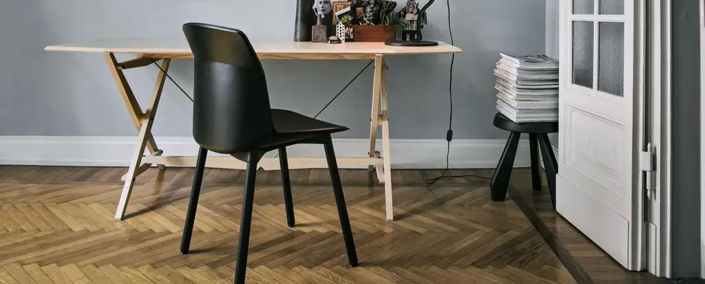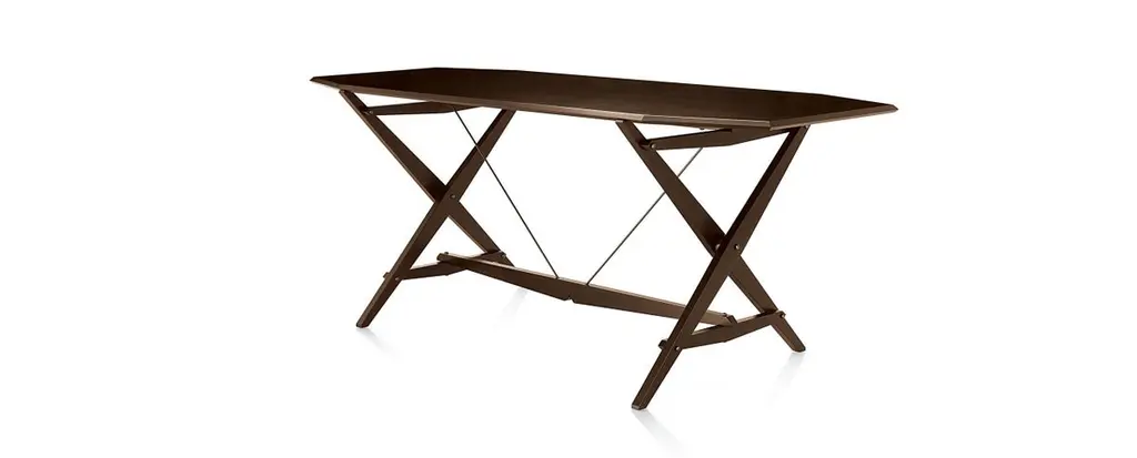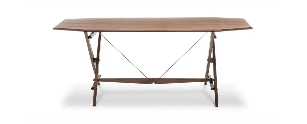Table designed by Franco Albini in 1950. Relaunched in 2008.Manufactured by Cassina in Italy.This table, with its minimal lines and an extremely light look, underscores the extensive thought, by Franco Albini, and the advanced wood-working skills, by Cassina, that went into its creation. Its stability based on the principle of opposing forces, the frame looks improvised, volumes and weights having been reduced. Cavalletto, which means trestle in English is assembled using two tensioning rods in burnished brass that also serve for bracing. The intricate construction process, executed by Cassina’s carpenters, illustrates the excellence of the wood-working skills of the craftsmen of Meda. Offering an extremely refined interpretation of form, this vision of elegance shows Cassina’s customary attention to detail extending to the metal parts, not to mention the border trim on the table-top.Important information regarding images of products:Please note that some of the images show other colors and variations of the model, these images are only to present interior design proposals. The item that is selling is on the first image. Important information regarding color(s) of products:Actual colors may vary. This is due to the fact that every computer monitor, laptop, tablet and phone screen has a different capability to display colors and that everyone sees these colors differently. We try to edit our photos to show all of our products as life-like as possible, but please understand the actual color may vary slightly from your monitorAbout the designer:Minimal in form from concept to design, Albini’s furniture emerged from a traditional Italian craftsmanship practice. Using artisanal materials such as woven cane for the design of some of his most seminal works, such as the Margherita and Gala chairs, Albini applied a modern aesthetic to the design and construction of his products. Trained under the apprenticeship of famed Italian furniture designer Gio Ponti, Albini got his start with the design of a radio encased in glass revealing the inner mechanisms of the device. His later works developed from this tension between usability and style, and including products such as the Fiorenza, Luisa and Rocking chaise. Albini was also a celebrated architect working on important architectural projects in Italy such as the Rome Rinascente building and Milan subway stations.About the manufacturer:In a continuing dialogue between past, present, and future, Cassina has created the I Maestri collection, revisiting furnishing designs by the 20th century’s best-known architects, including Le Corbusier, Pierre Jeanneret, Charlotte Perriand, Charles Rennie Mackintosh, Gerrit Thomas Rietveld, Franco Albini, Frank Lloyd Wright and Marco Zanuso. While the designs and functional concepts have been precisely preserved, the models have been manufactured using evolved technology. This is also the company that has manufactured iconic pieces of contemporary design from the 1950s to the present day, ideated by some of the most important international designers. Today Cassina continues to look to the future of design with audacious, passionate curiosity and an open, holistic approach. It affirms its exclusive ability to furnish a home’s living and dining spaces completely and iconically with The Cassina Perspective: a concept, a philosophy, an informed, futuristic thought. A detailed, expansive horizon of combinations; when placed together, the products have an innovative soul and the modern icons create authentic, welcoming, personal atmospheres involved in a conversation dominated by a code of design excellence, formal sensitive awareness, solidity and cultural authority.