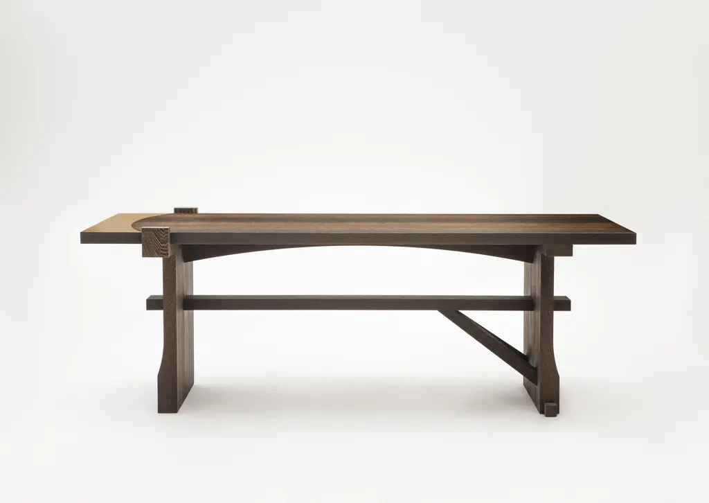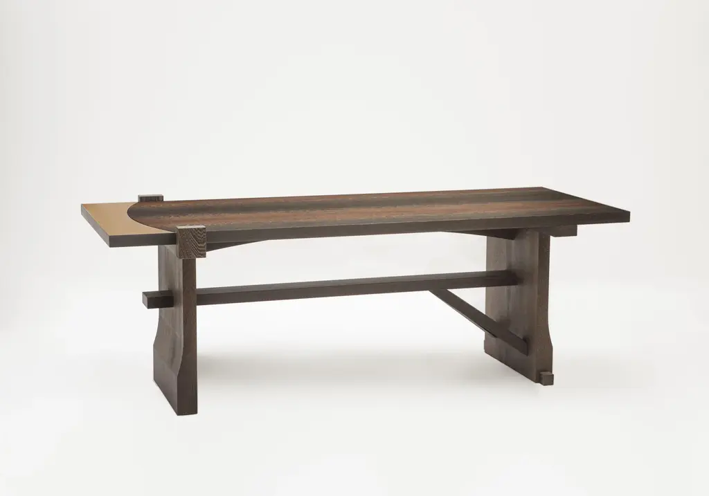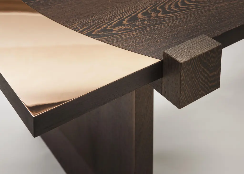A timeless table that recalls the Italian tradition of sharing in simplicity, recalling the ancient image of the refectory, where meals were taken as a common ritual. Fratino is made with wengè, the wooden surface is decorated with a bronze insert which lends a touch of precious light to the simplicity of the piece. Labeled by Maker,Labeled by Maker