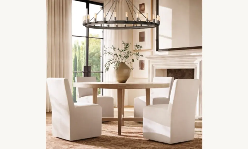 Inspired by clean-lined classical forms, our French Contemporary table designed by the Van Thiels is defined by a simple silhouette and refined restraint. The crisp geometric profile is handcrafted of American white oak that's been sandblasted to impart a subtle texture.SHOP THE ENTIRE COLLECTION ▸