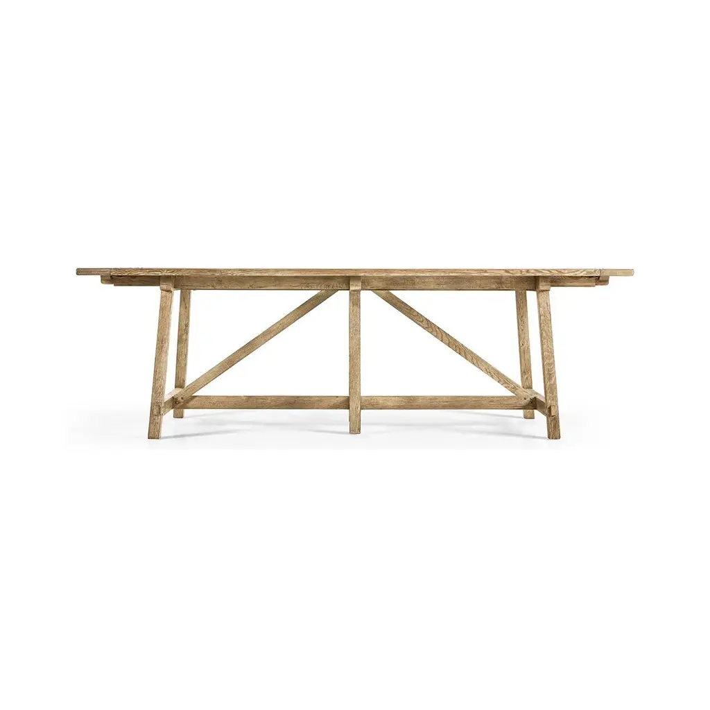 The French Laundry dining table is the perfect combination of unparalleled furniture craftsmanship, elegant functional solutions, and inspiring design. Powerful honed forms in stripped Chetnut elicit a raw appreciation for natural materials and offer a unique experience of understated luxury. With the ability to extend up to 144 inches with removable leaves. Dimensions: Open - 144" W x 38" D x 29.75" H Closed - 96" W 2x leaves Clearance under apron - 25.75"