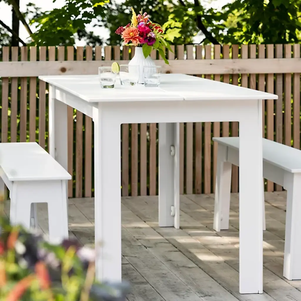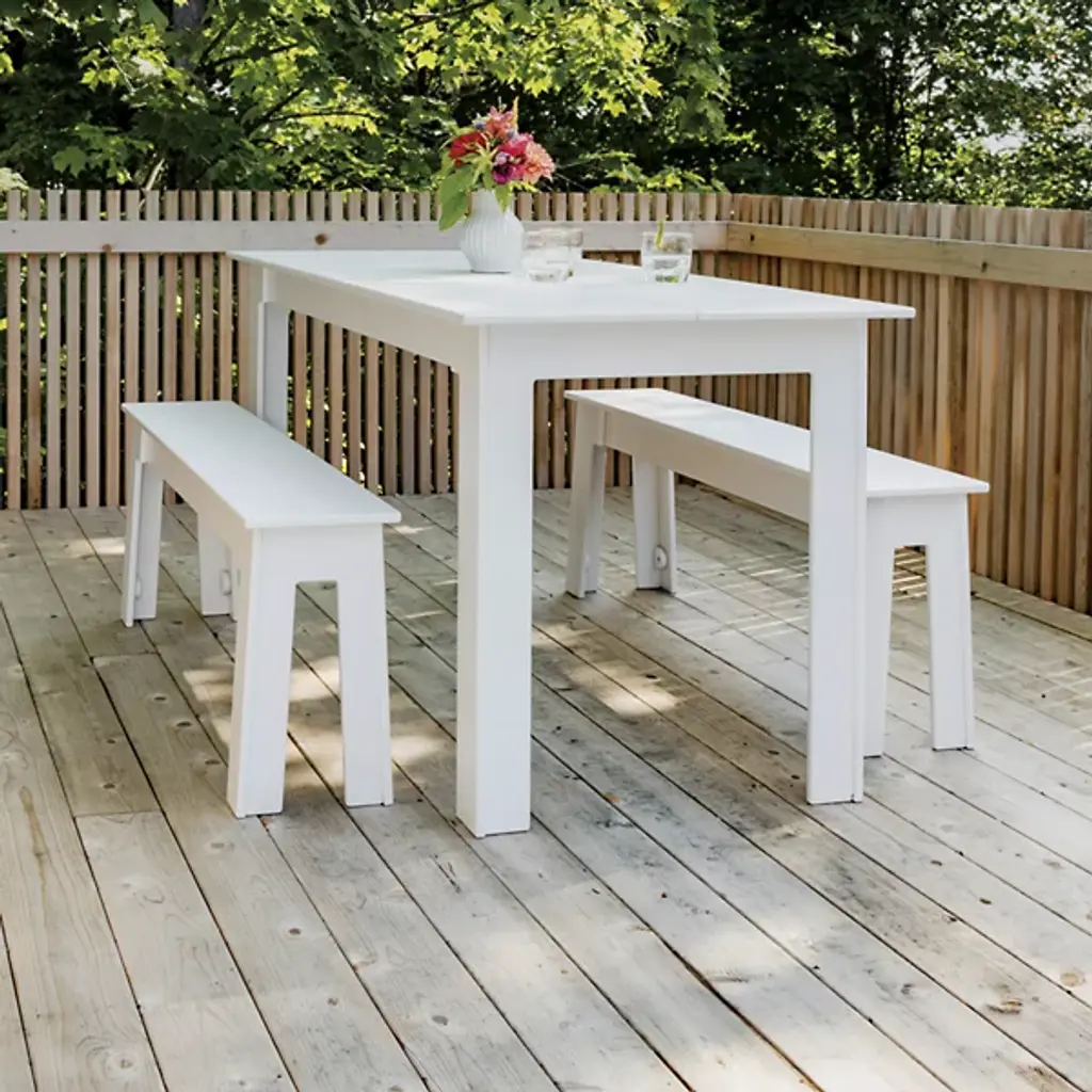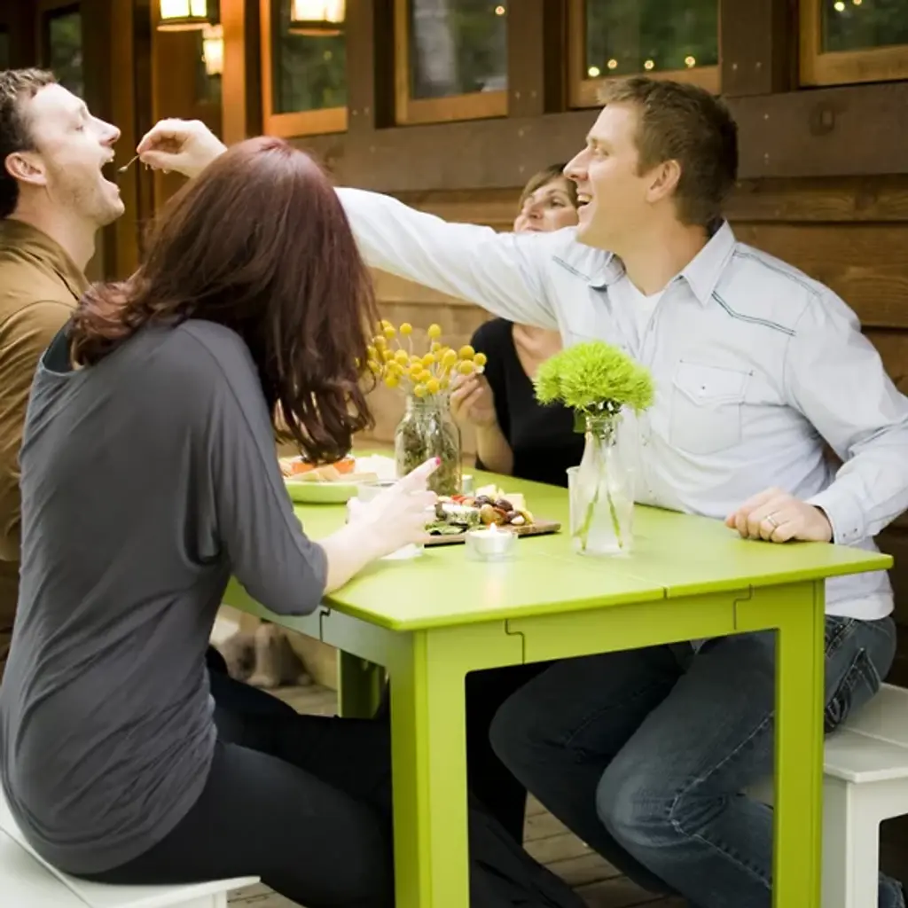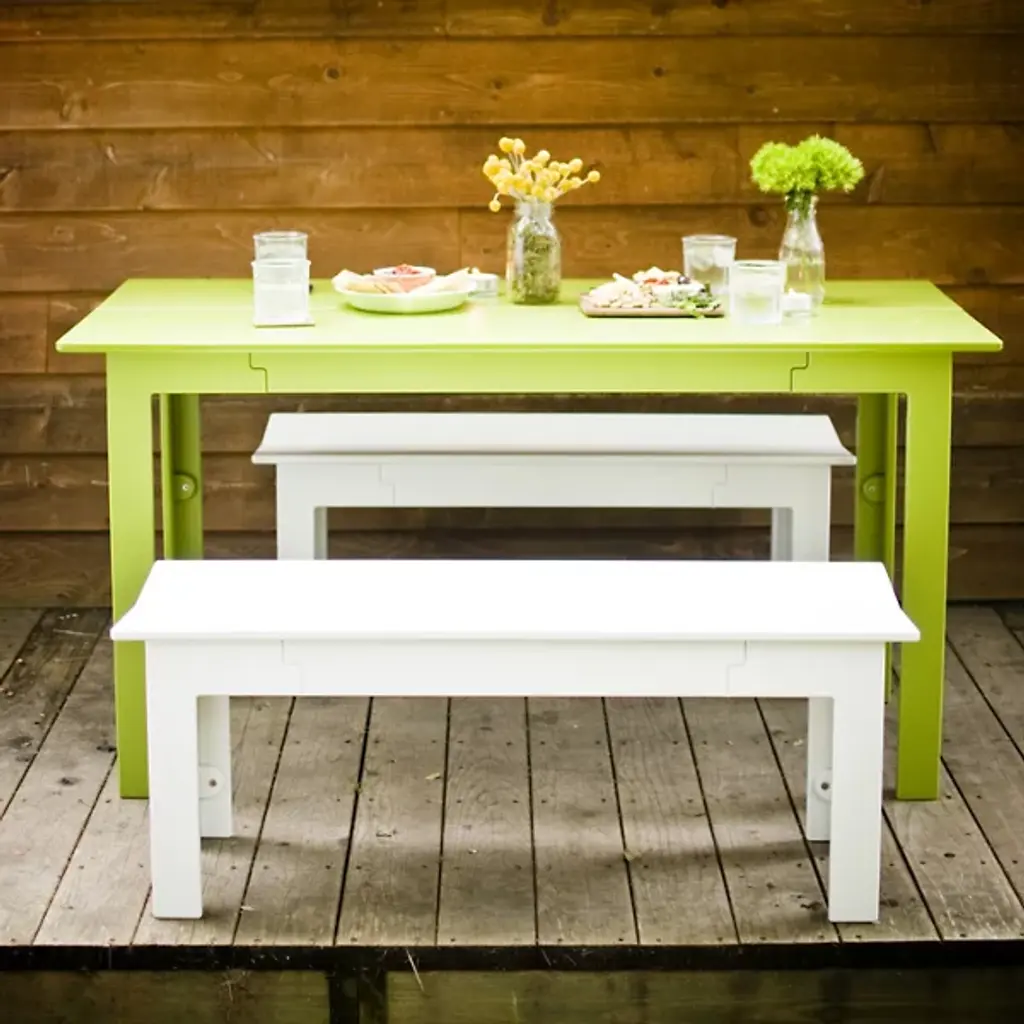 The clean and simple design of the Loll Designs Fresh Air Outdoor Dining Table was based on that special something that occurs when fresh air combines with healthy food and good friends. The table is nearly five feet long, made out of uniquely joined slats and legs that are all made out of recycled milk jugs and non-recycled HDPE.