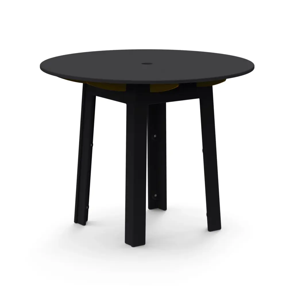 Fresh air, healthy food and good friends; it all comes together in Fresh Air Collection. Loll Designs offers this modern outdoor collection in a number of sizes to perfectly suit any appetite. Pairing nicely with the slender Fresh Air Bench 18, the Fresh Air Round Table offers a roomy two-person or four-person dining experience or call it happy hour with four. Two top slats prevent water from pooling and a 2” umbrella hole additionally centers the table. Features UV INFORMATION: RICHLITE: LOW-IMPACT MANUFACTURING: