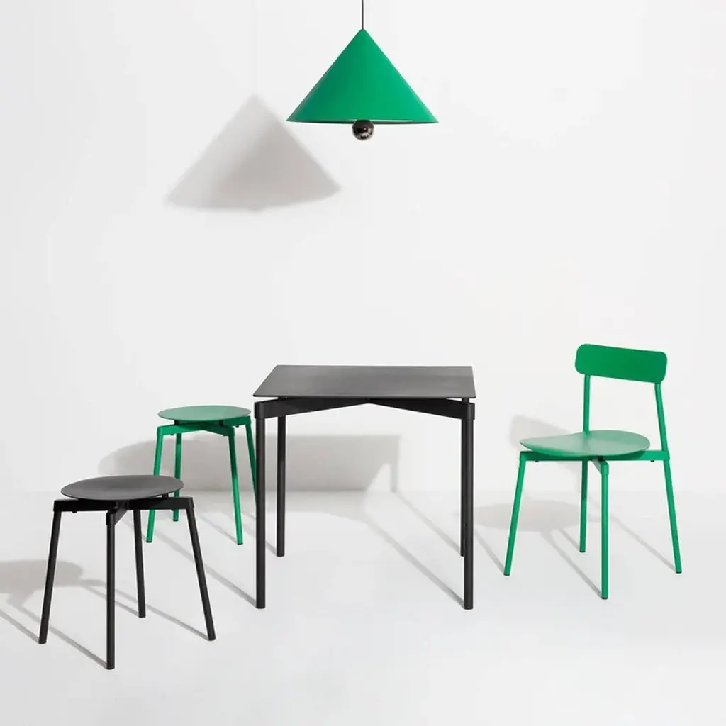 Petite Friture’s Fromme table boasts simple, streamlined shapes and a thin, square-shaped tabletop with integrated shock absorbers that give it a slightly flexible feel. Made of matte-coated aluminum, the Fromme table is designed for both outdoor and indoor use – it is equally ideal as a patio table in the garden or as a dining table indoors. Canadian designer and cycling enthusiast Tom Chung came up with the initial idea for the Fromme collection while cycling at Mount Fromme near Vancouver. Inspired by the technical features of his bike, he designed a collection featuring small shock absorbers under the seats and tabletops, as well as lightweight and durable cast aluminum tubes with weatherproof powder coating. The Fromme series is made using recyclable materials and UV-resistant coatings that don’t contain harmful VOCs.