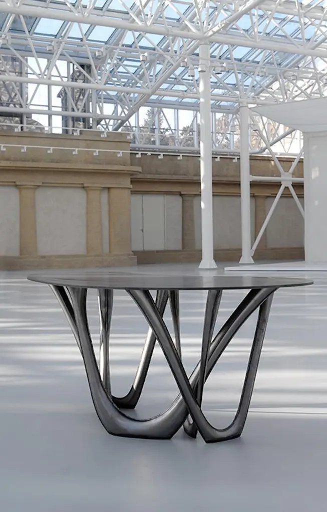 G-Table By Zieta, Brushed Inox Base And Concrete Top