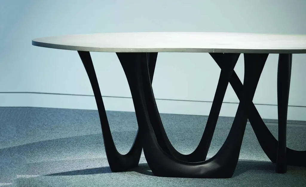 "G-Table BC" contemporary dining table by Zieta ProzessdesignBase: brushed stainless steel (inox)Top: concrete (picture of the sample attached)Measures: 75 x 220 x110 cm.Several finishes available: - material for the base (carbon steel / stainless steel / copper / gold)- material for the top (carbon steel / wood / concrete / granite)Zieta is best known for his collection of stools “Plopp” made through the technologist FIDU. With the same principle Zieta Prozessdesign conceived mirror collections made of stainless steel called “Tafla”, “Rondo” and “Rondel”. Two laser-cut metal sheets are first welded together before air is injected between them until they separate from each other forming a three-dimensional object.