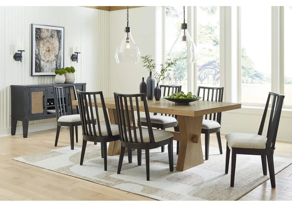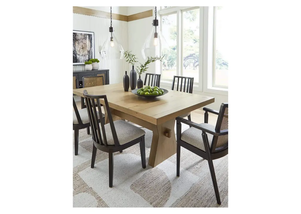 The Galliden dining table expertly refines the raw beauty of wood, bringing a rustic vibe to urban contemporary design. It creates an organically beautiful feel in your dining room—an extra-thick tabletop spotlights the unique, natural details of the wood. And the stunning simplicity of the materials allows you to seamlessly coordinate this table with your existing decor. Weight 181.000 lbs. (81.45kgs.)
