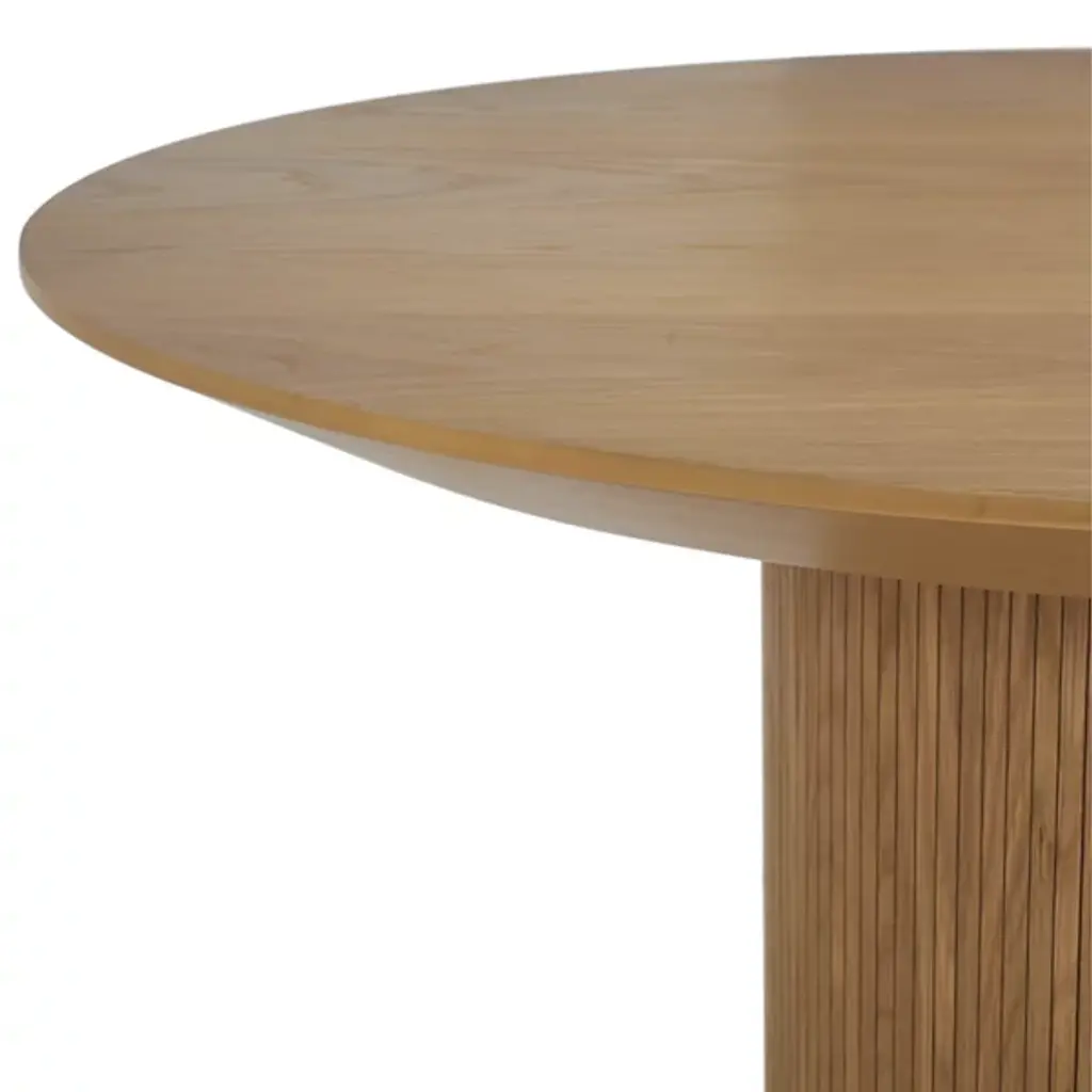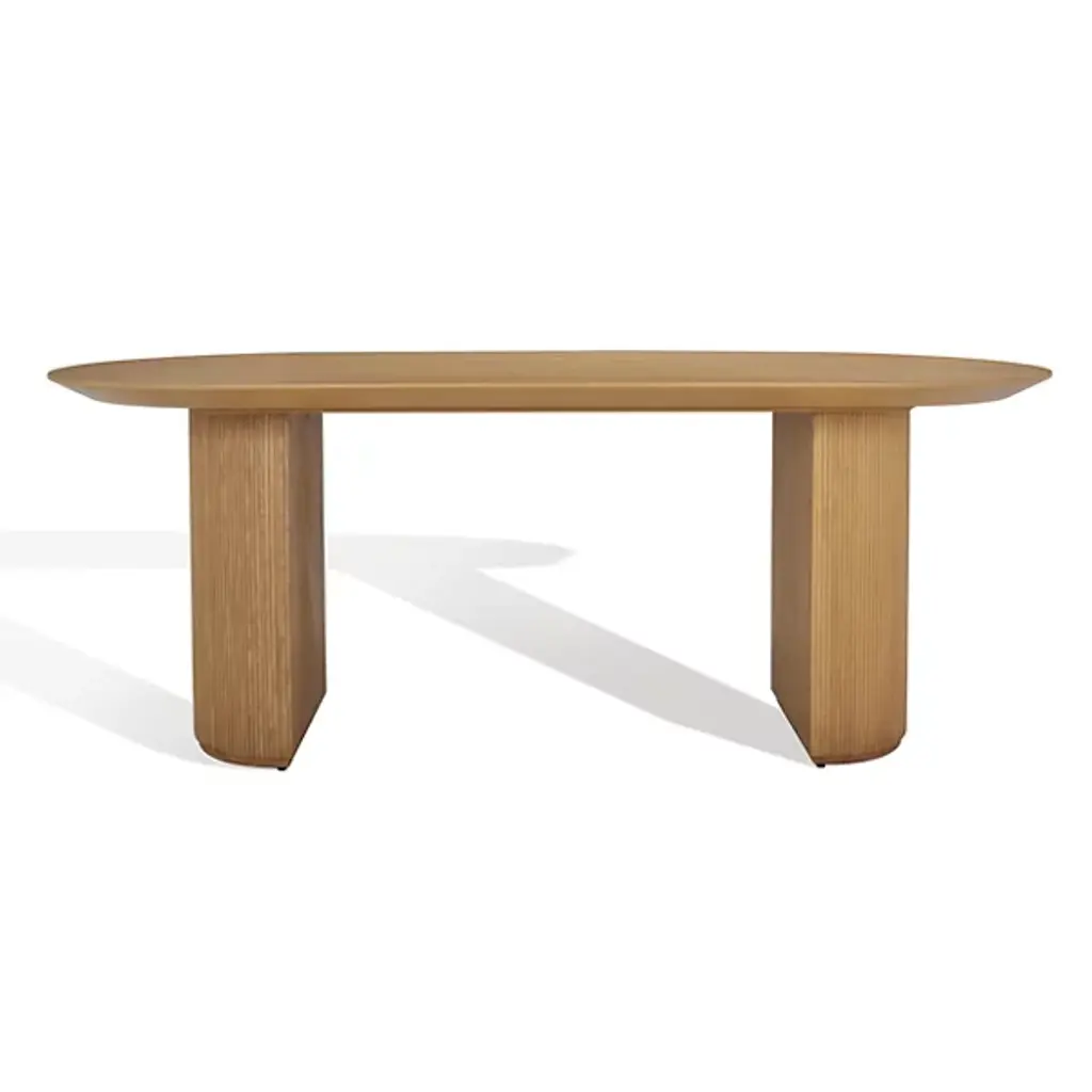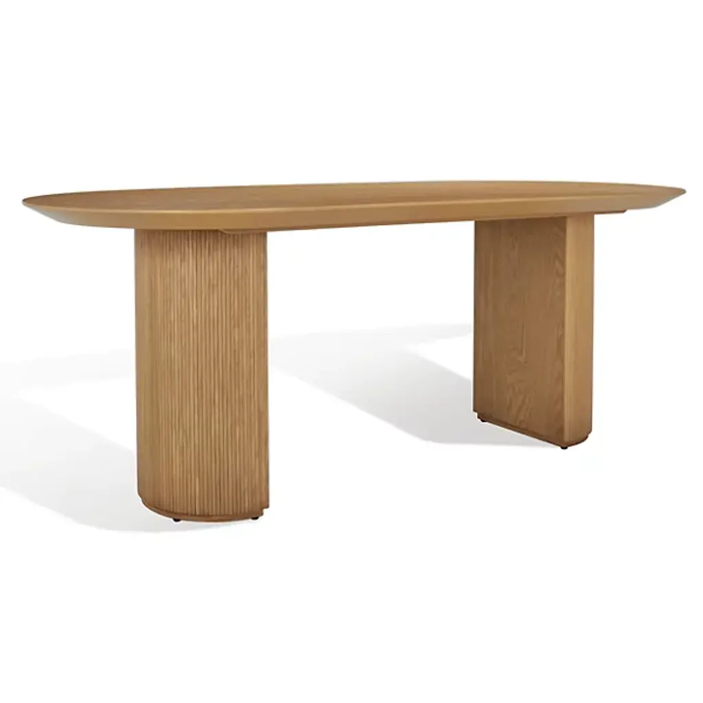 The Garabina Dining Table from Alder & Ore combines contemporary design and rustic charm that transforms your dining area. Featuring an elegant, ovular tabletop, this table offers a spacious surface for dining and gatherings, leaving plenty of room for dining chairs. Crafted from a blend of solid beech, oak veneer, LVL beech, and MDF for depth and density, Garabina brings durability. This decorative piece is at once functional and understated.