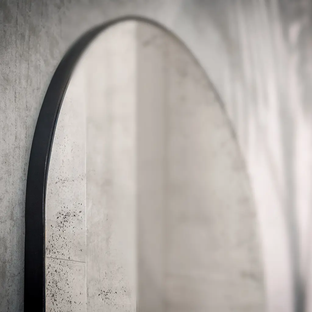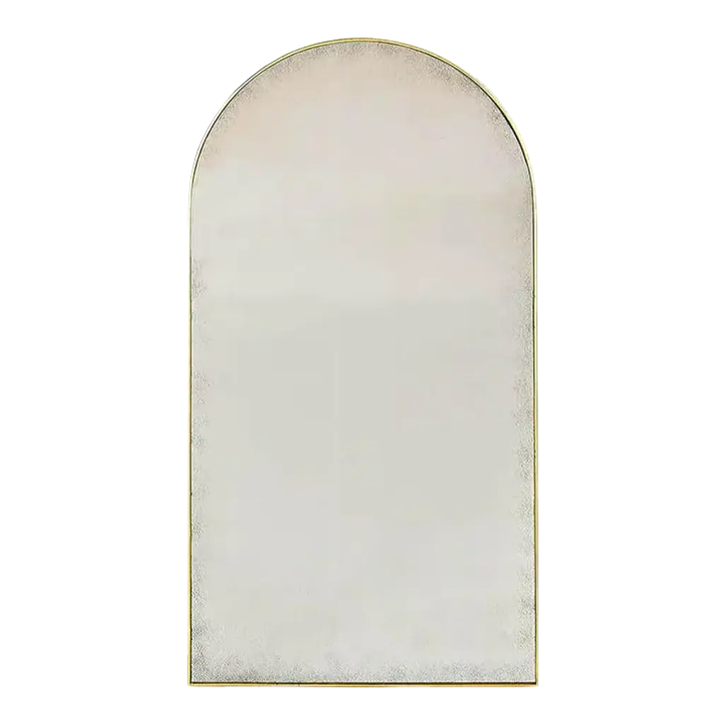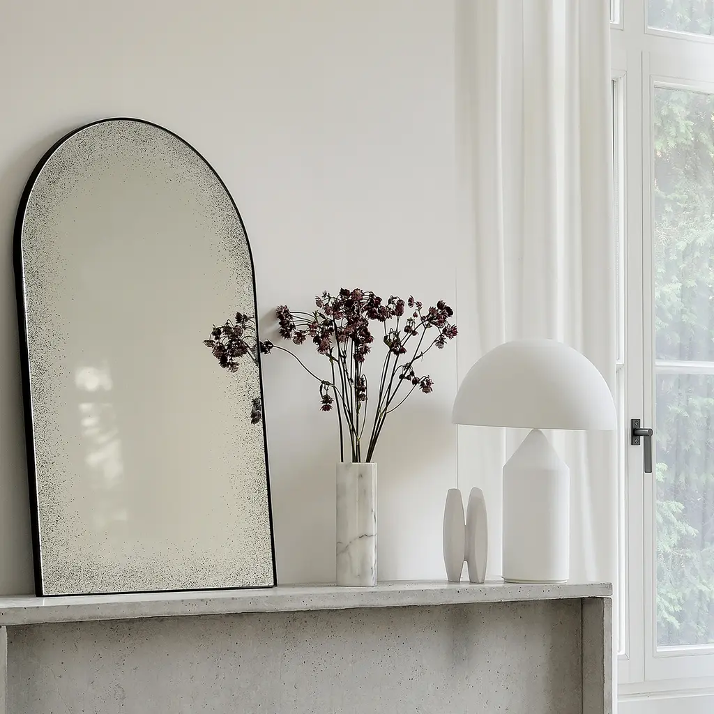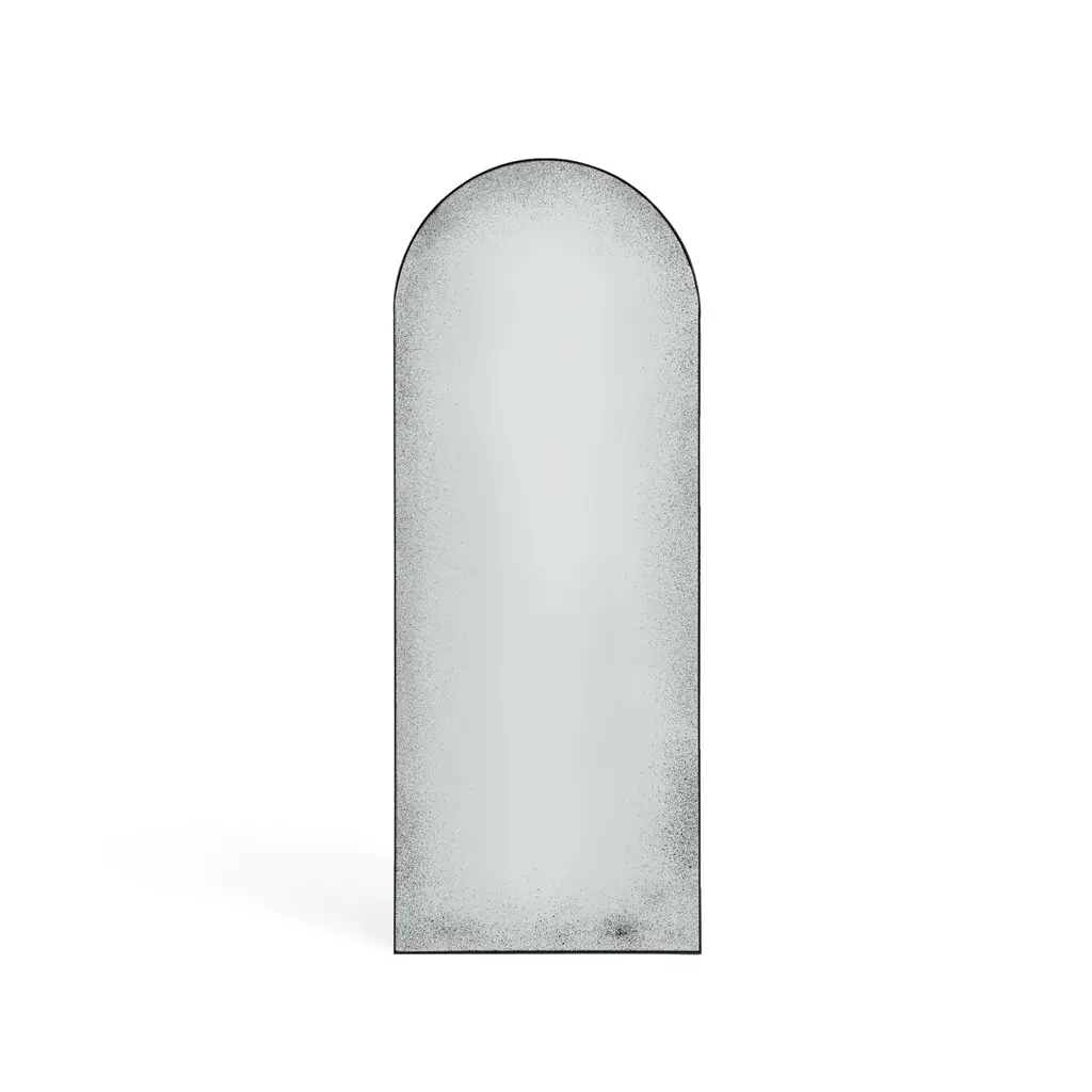 The Clear Gate Wall Mirror by Ethnicraft combines practical design with aesthetic appeal, suitable for a variety of interior styles. This mirror features a large, arched surface that adds a sense of openness to any room by amplifying natural light and enhancing the perception of space. Its aged, speckled finish introduces a touch of vintage charm, while the simple metal frame maintains a clean, contemporary look. This versatile piece is designed to be adaptable; it can be mounted above a console table in an entryway, positioned on a mantle in a living area, or leaned against a wall in a dining space. The subtle aged effect on the glass provides visual interest without overwhelming existing decor, making it compatible with modern farmhouse, Scandinavian, and industrial themes. The mirror’s robust construction ensures durability, while its sizable dimensions make it a functional focal point in both small and large rooms.