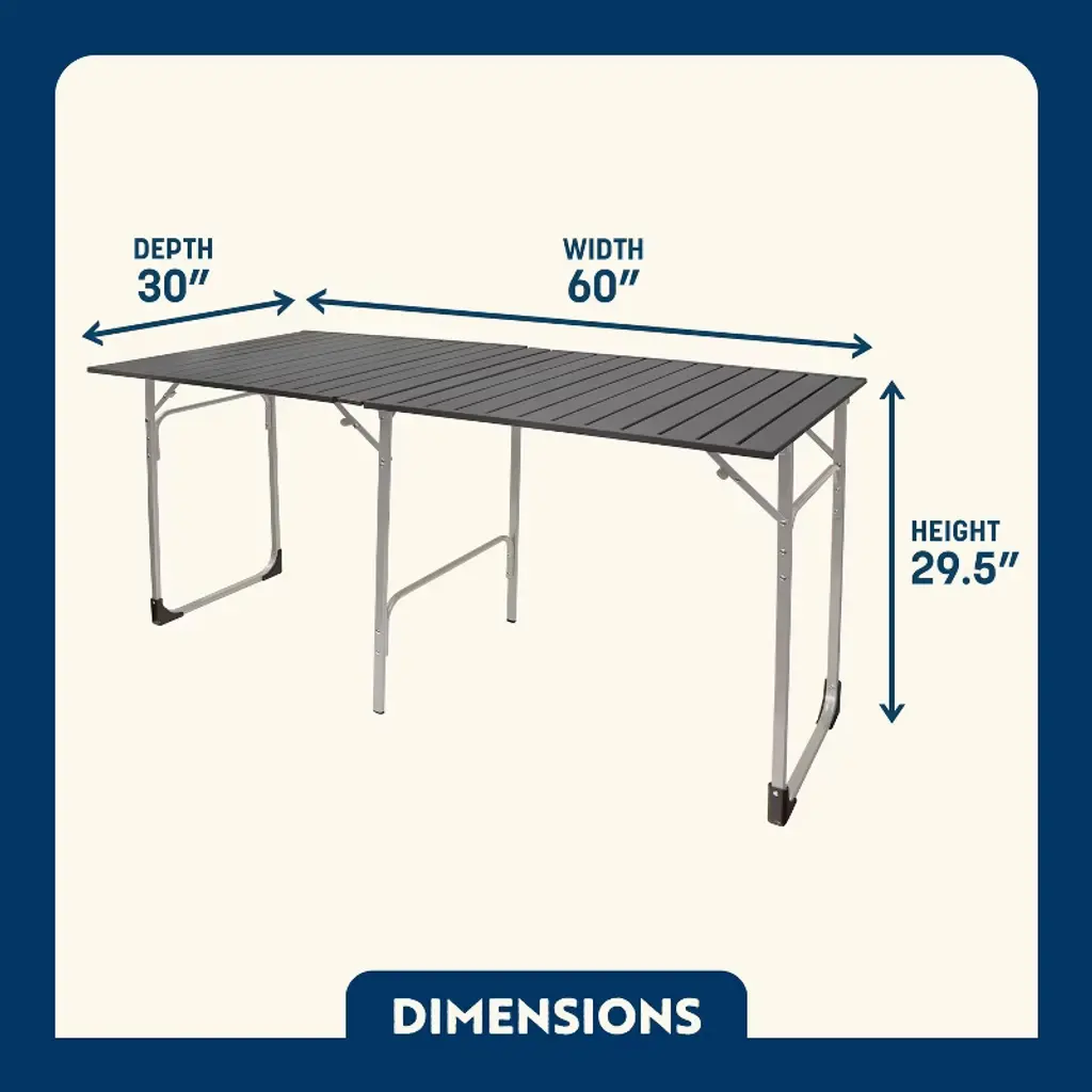 Turn any outdoor space into a dining room with the GCI Outdoor Slim-fold Table XL. With a rectangular shape that comfortably seats up to 6, transport this table on every adventure thanks to its compact design and easy-to-carry handle built in. Whether you’re tailgating before a big game, setting up camp by the lake or barbecuing in the backyard, the heat-resistant aluminum tabletop holds up to 125 lbs. of food, dinnerware and cooking equipment to please a crowd. When it’s time to head home, the frame folds flat for compact storage in the back of the trunk. Plus, the GCI Outdoor Slim-fold Table XL comes with a limited lifetime warranty, so you can fully experience the outdoors worry-free.