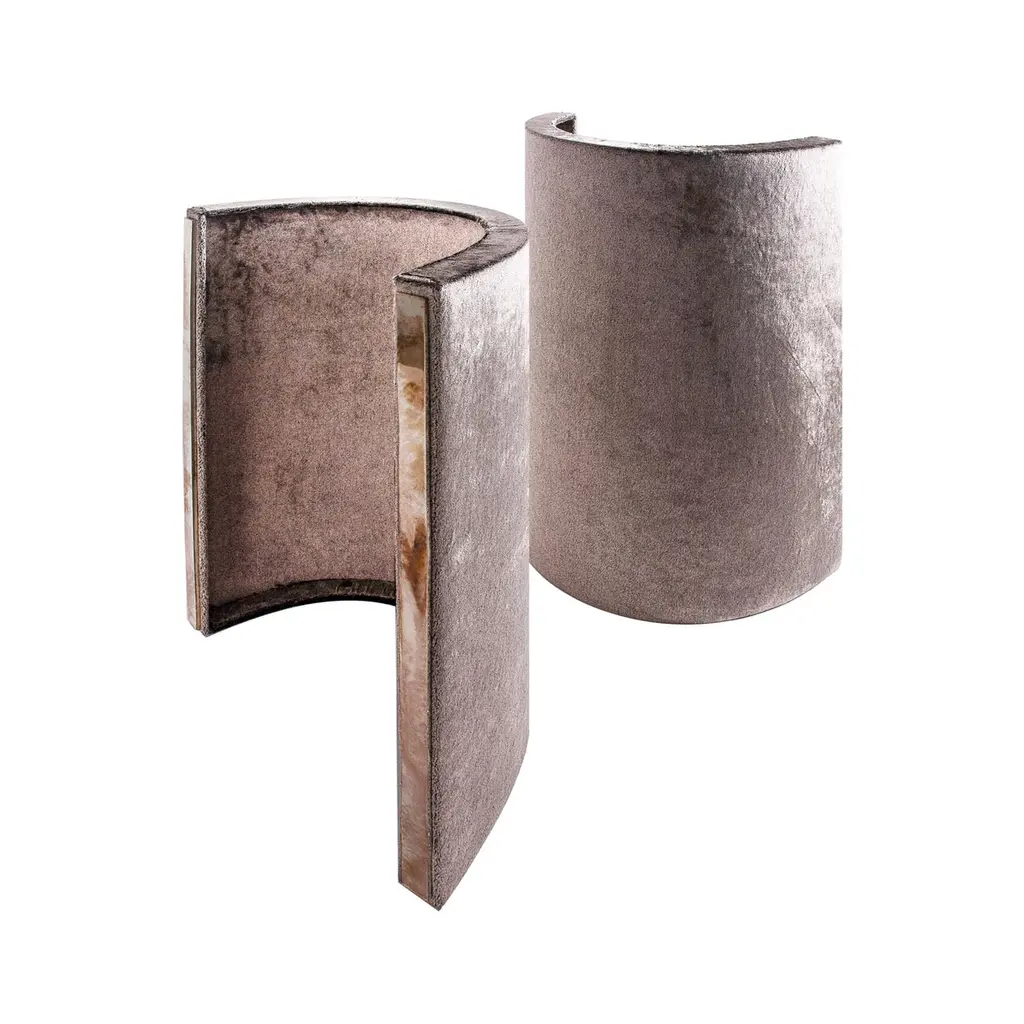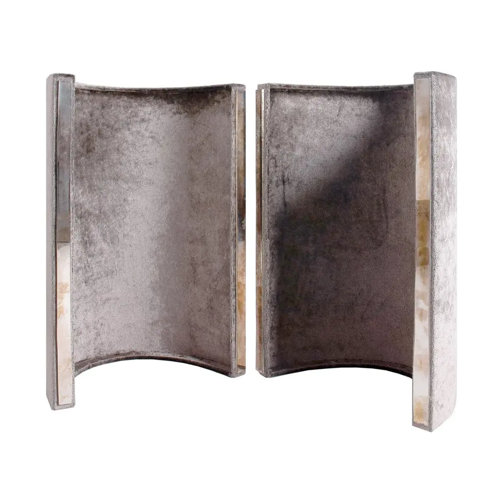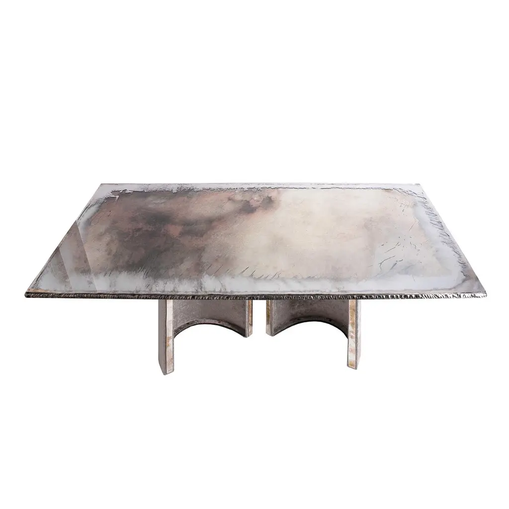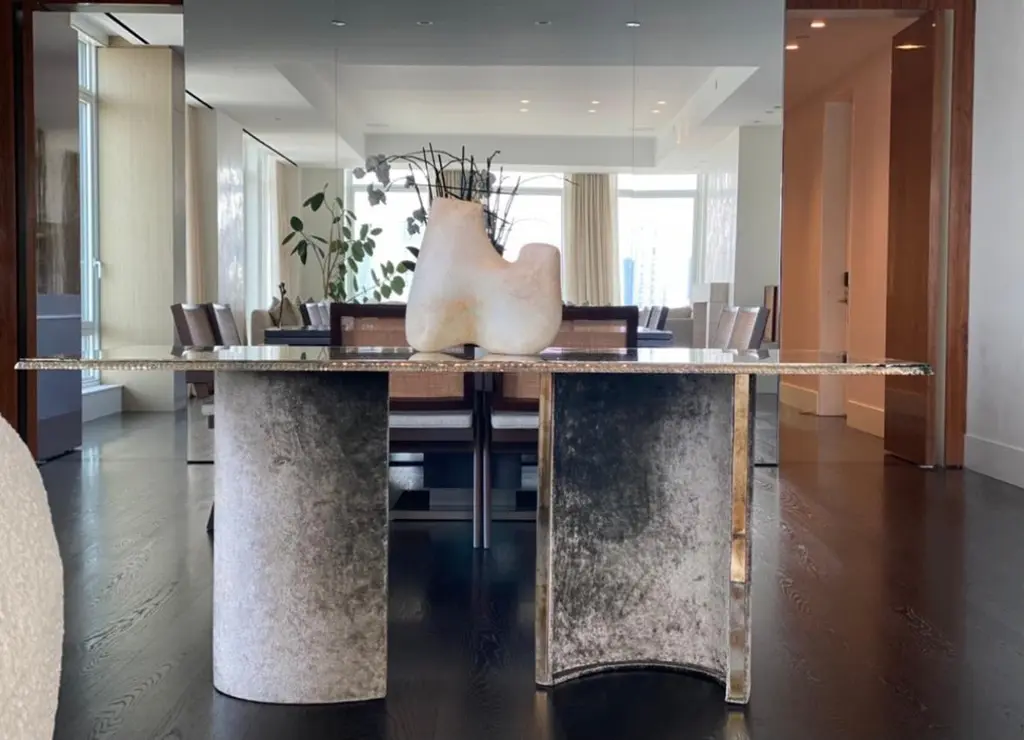 Combining contemporary modern style with details inspired by our glass tradition, Sabrina Landini GEM tables reinterpret our legendary links into head-turning design accentsThe table, reminiscent of a gem hugged by its staples, with its velvet or clear pvc free-positionable legs and precious double silvered top, will decor the interior space with timeless elegance and full functionality. Now, the classic design serves as the foundation for one of our most iconic dining/coffee table in collection, where to reflect and shine. Each unique—perfect or imperfect—and always beautiful. Here, we explore the beauty each item, sculpted by our artisan hands, in our Atelier in Tuscany, entirely made in Italy.Glass surfaces :15mm under top, irregular/hammered edge, Sabrina's silvered6mm transparent top glass, silvered at the edge, for current use, cleaning and maintenance, not interfering with the elegant silver finish that lies beneath Plexiglass legs, upholstered with velvet or left clear with silvered glass strips Available versions : dining, cocktail, side tableCustom size are available on request.