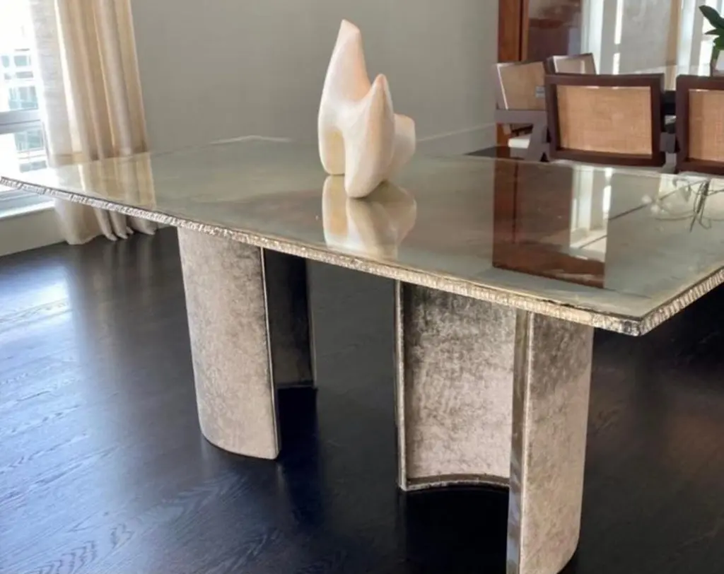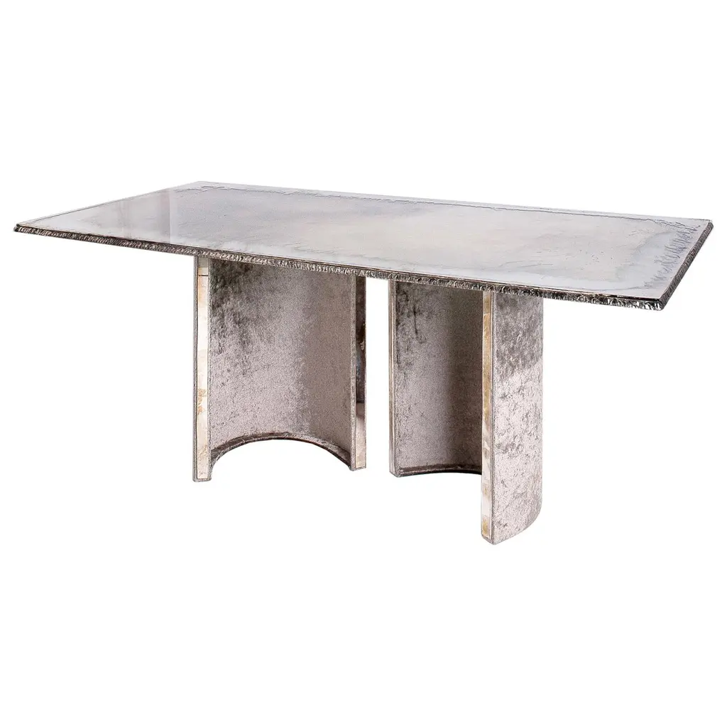 Gem, Contemporary Dining Table 200 Silvered Glass Top, Pair Of "Gem" Velvet Legs