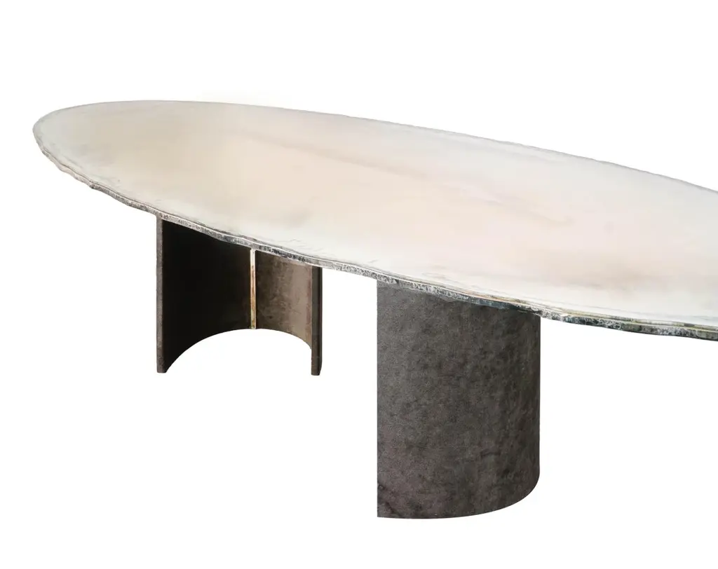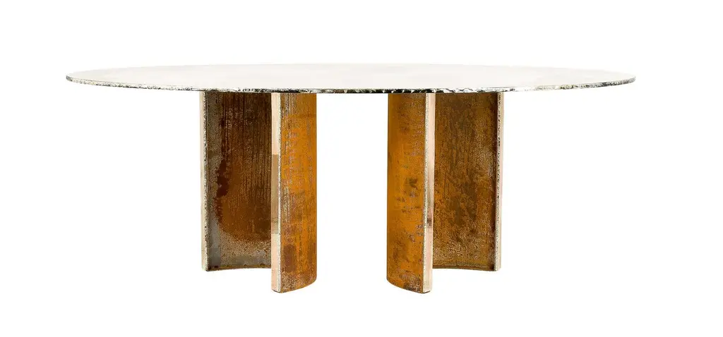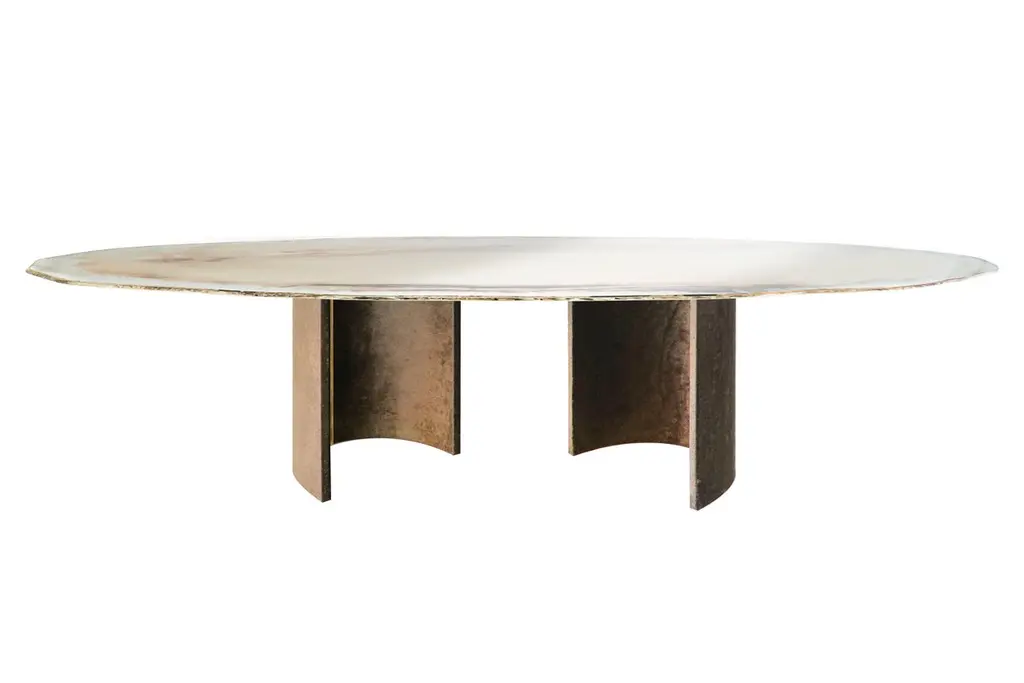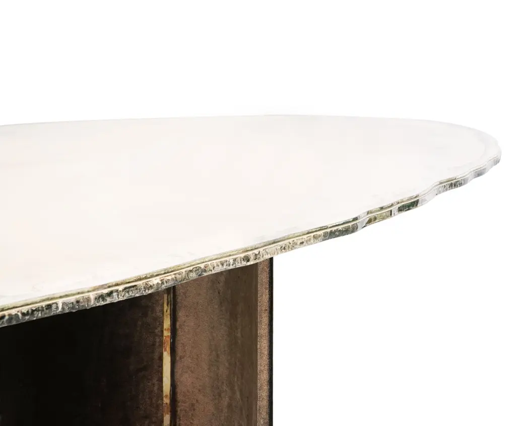 Gem, Contemporary Dining Table 280 Silvered Glass Top, Pair Of Velvety Legs