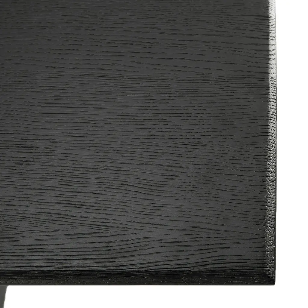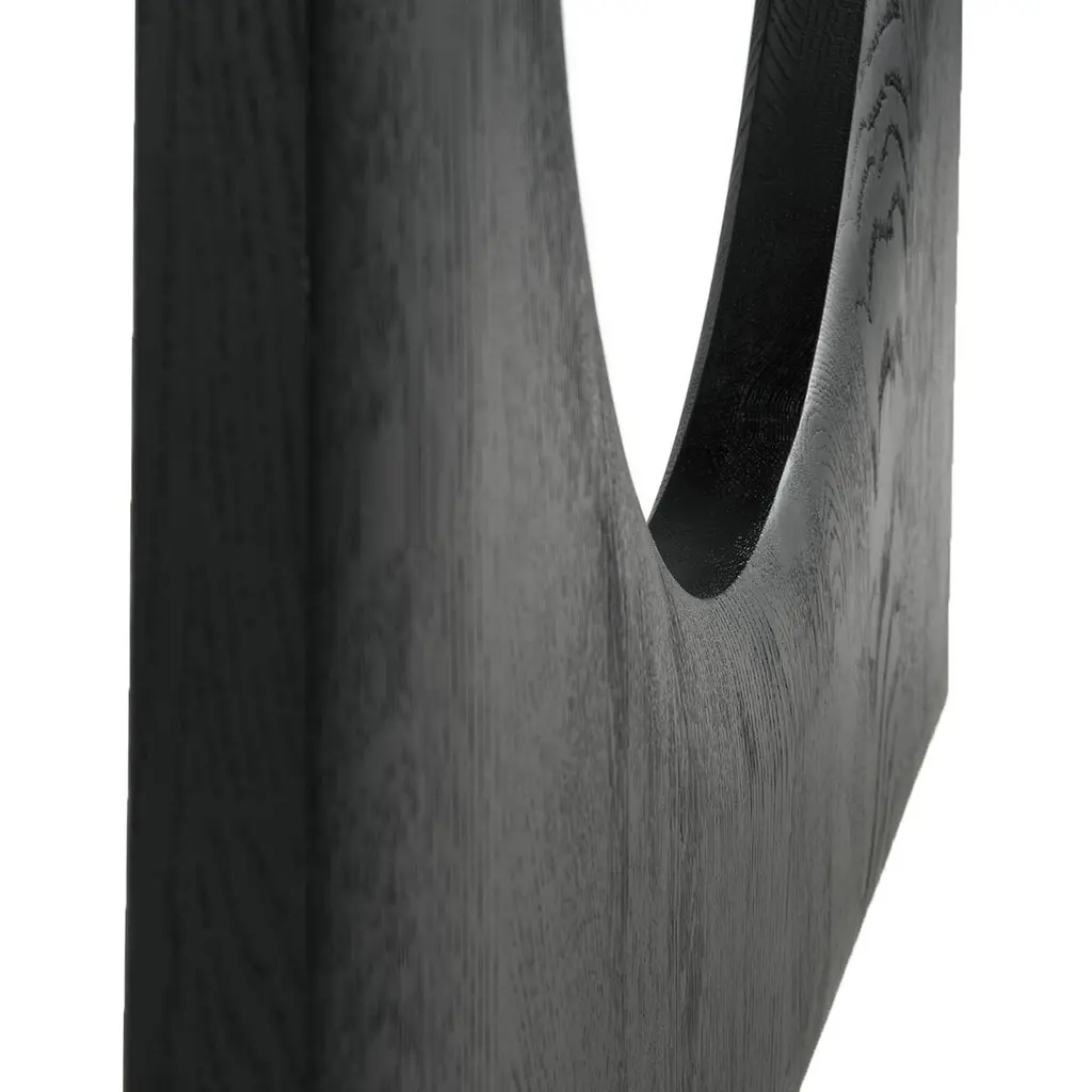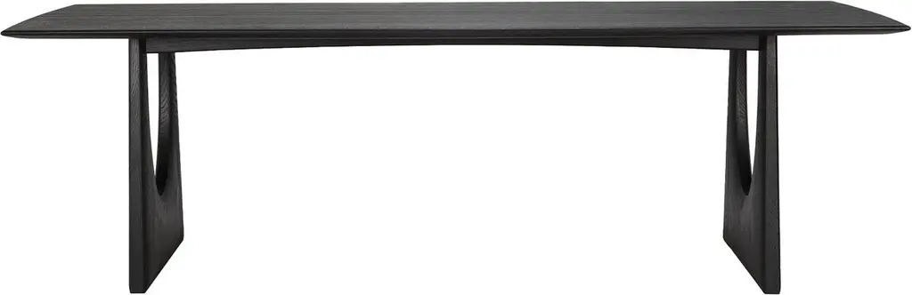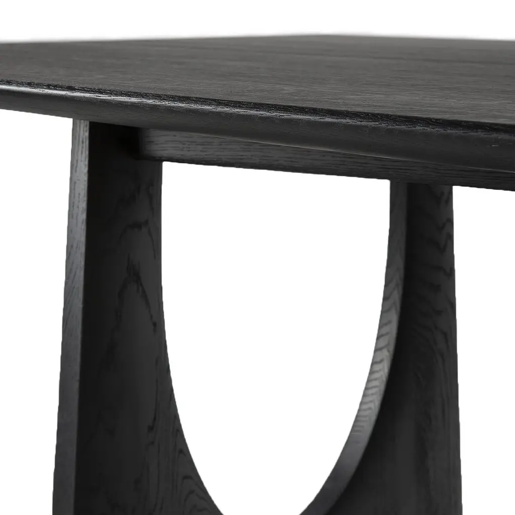 Curves carved into this dining table's base are a sculptural complement, and contrast, to its straight lines. The table is crafted of oak, prized for both its durability and its distinctive grain; the black finish adds sophistication to the organic texture.