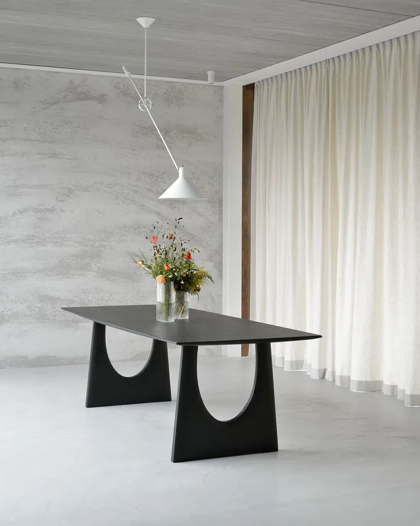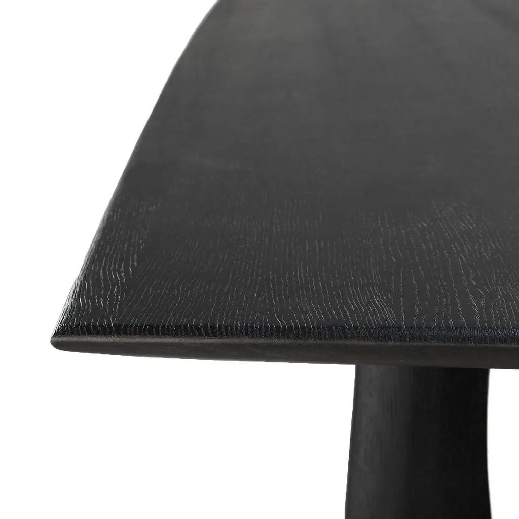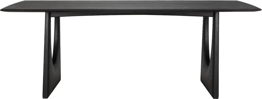 Curves carved into this dining table's base are a sculptural complement, and contrast, to its straight lines. The table is crafted of oak, prized for both its durability and its distinctive grain; the black finish adds sophistication to the organic texture.