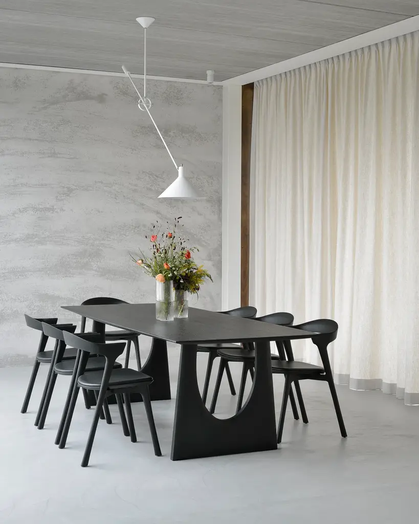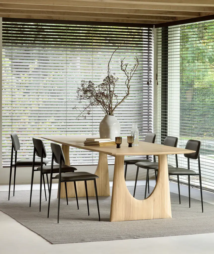 With enriched shapes and unexpected details, the Geometric solid oak dining table is a statement item, equally at home in the dining room or workspace. Luxury comes with its length, which is offset by softened edges and natural lines. Interesting shapes are in play to add volume and practical comfort.
