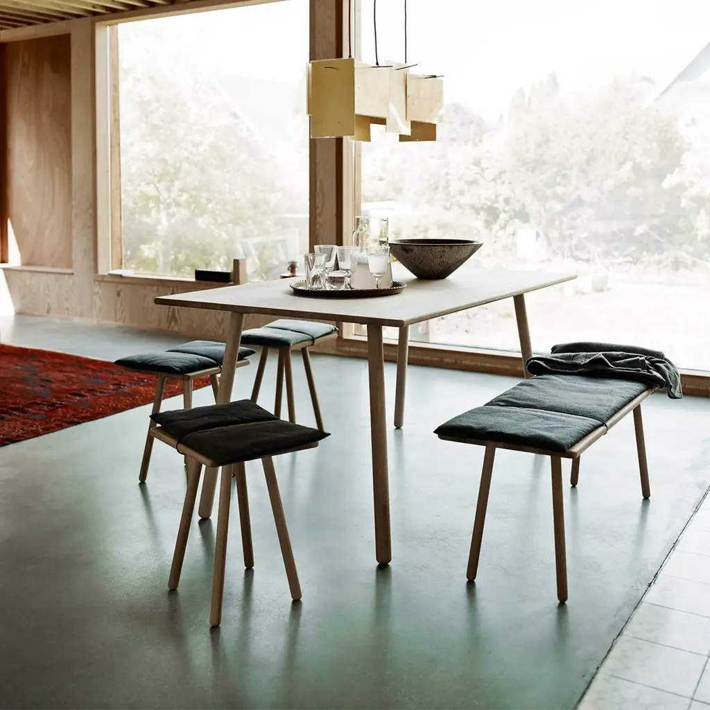 Georg’s fluid interplay of a Nordic heritage and subtle Japanese influences converge in a simple but sophisticated dining table. Designer Chris Liljenberg Halstrøm creates generous seating for 6 or more by drawing the table legs in underneath to minimize its footprint. Sparingly proportioned with sturdy but slender lines, the table is handsomely crafted in natural or black-finish oak.