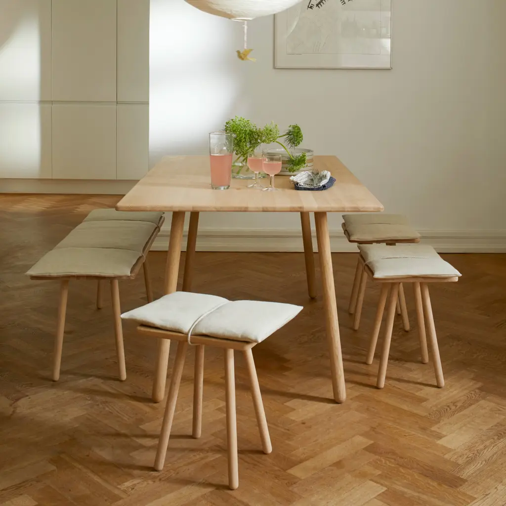 Georg’s fluid interplay of a Nordic heritage and subtle Japanese influences converge in a simple but sophisticated dining table. Designer Chris Liljenberg Halstrøm creates generous seating for 6 or more by drawing the table legs in underneath to minimize its footprint. Sparingly proportioned with sturdy but slender lines, the table is handsomely crafted in natural or black-finish oak.