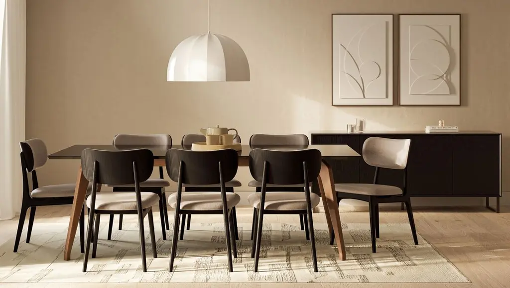 The Geraldine Dining Table offers a perfect blend of style and versatility. Its rectangular shape, combined with a modern design, creates a striking focal point for any dining or workspace. Crafted with four sturdy solid legs, this dining table exhibits both durability and elegance. The tone-on-tone glass and lacquered dining tabletop add a sleek and sophisticated touch to its overall aesthetic. Not only ideal for dining, but the Geraldine Dining Table can also effortlessly serve as a functional desk.