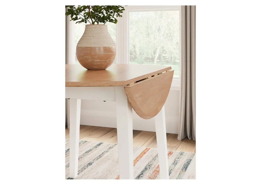 Complement your home’s simply relaxed sensibility with the Gesthaven drop-leaf dining table. A crisp white hue offers a chic contrast to the natural wood tone, for a neutral look that vibes with a variety of aesthetics. When guests drop by, convert it from a space-saving two-seater to a larger table with the two drop leaves. Whether you're sipping your morning coffee, settling in for dinner or working from home, this table is smartly designed for everyday comfort and style. Weight 55.000 lbs. (24.75kgs.)