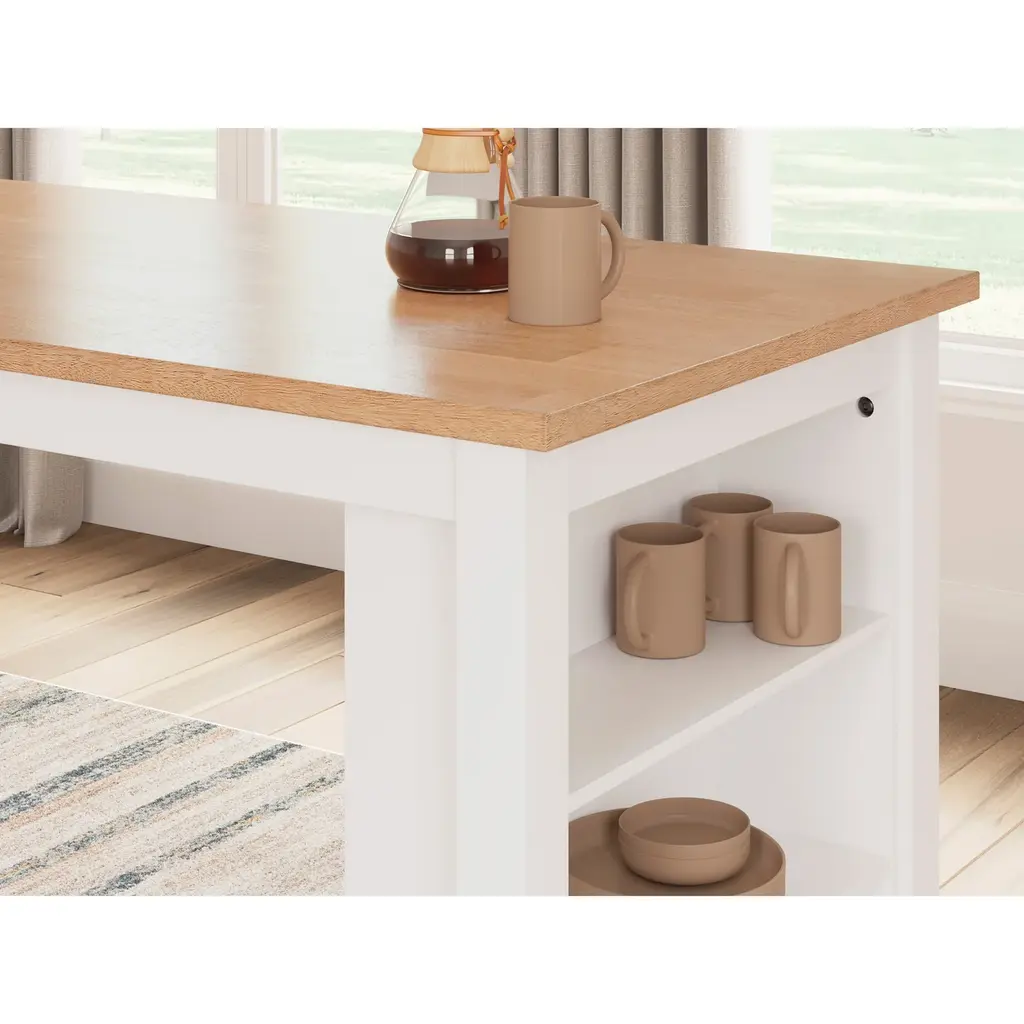 Complement your home’s simply relaxed sensibility with this counter height dining table. A handsome dark brown hue offers a chic contrast to the natural wood tone, for a neutral look that vibes with a variety of aesthetics. Built-in storage shelves keep kitchen and work accessories easily accessible. Whether you're sipping your morning coffee, settling in for dinner or working from home, this table is smartly designed for everyday comfort and style. - Product Details provided by Manufacturer, Slumberland not responsible for errors in information.