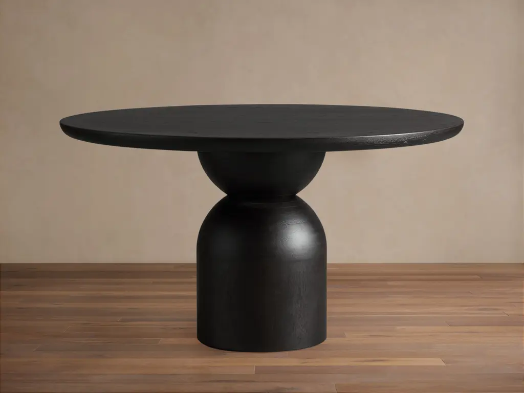 Give it up for the Gevra Black Acacia & Faux Plaster Dining Table! This sculptural dining table adds a modern moment to any dining space, showcasing the beauty of mixed media with its black acacia and faux plaster combination. The generous 54" diameter provides ample room for dining and entertaining. Gather your friends and family around this stunning table and create lasting memories in style and comfort.