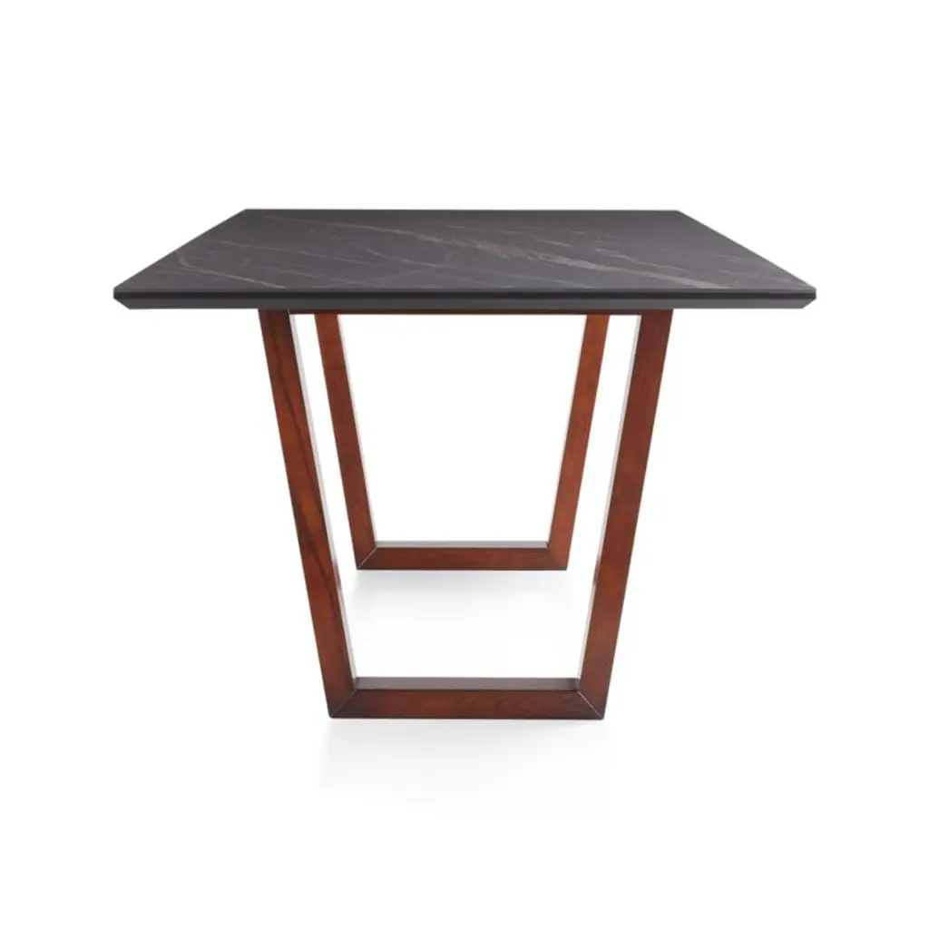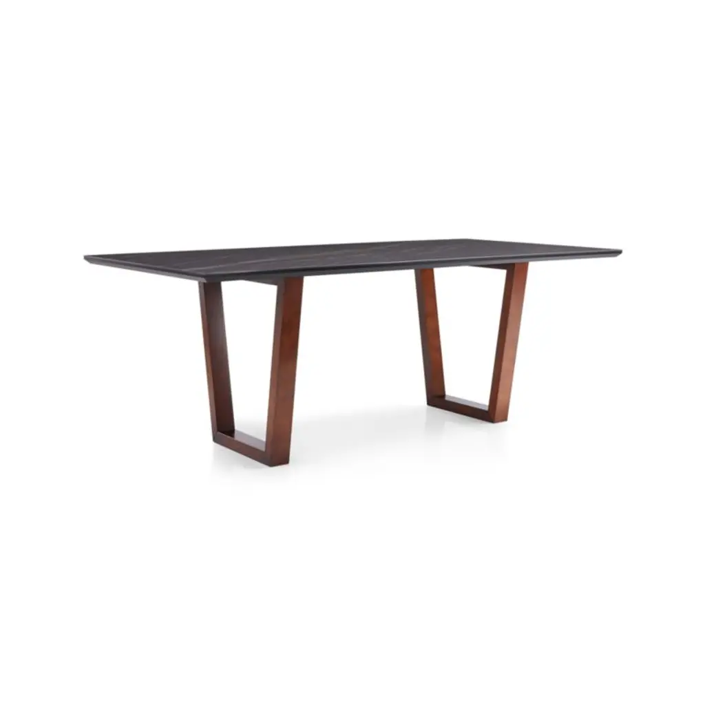 Nature and industry team up in our sleek, hardworking Giada table. Made of state-of-the-art porcelain, the sleek black top is stain-proof, heat-resistant, hygienic, non-porous and colorfast. Richly grained beech wood legs angle an architectural base with a contemporary U-shape. Perfect for family dinners or fancy feasts, the Giada table seats up to 10.
