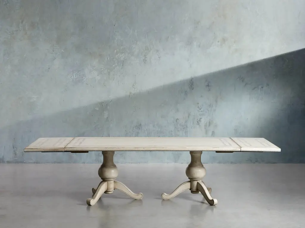 A passion for artistry, a celebration of family, a reverence for tradition. Our made-to order Italian dining tables are handcrafted and hand-painted by a family of master artisans who, over our 30 years working together, has become like family to Arhaus. Our Girardi Dining Table is built from solid poplar wood accented with hand-carved beaded molding, and a layered, hand-distressed finish, creating a versatile, timeless work of art.